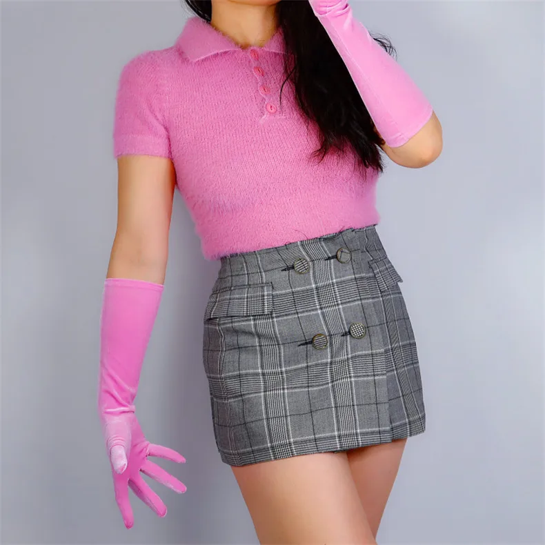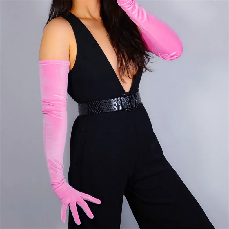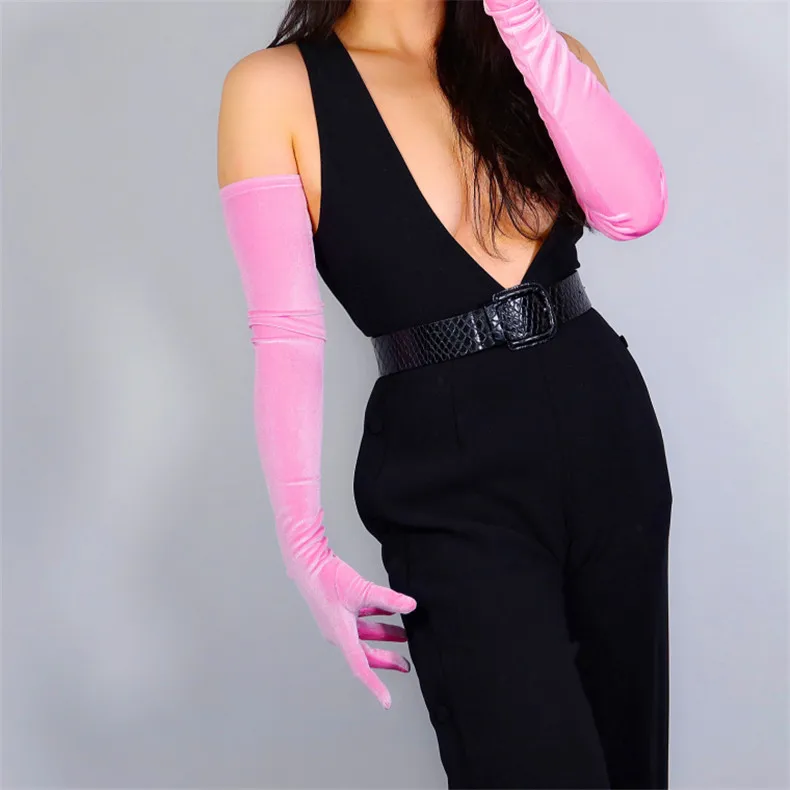 2020 новые бархатные перчатки 70 см 28 "сверхдлинные эластичные фланелевые светло-розовые женские велюровые перчатки с сенсорным экраном WSR37