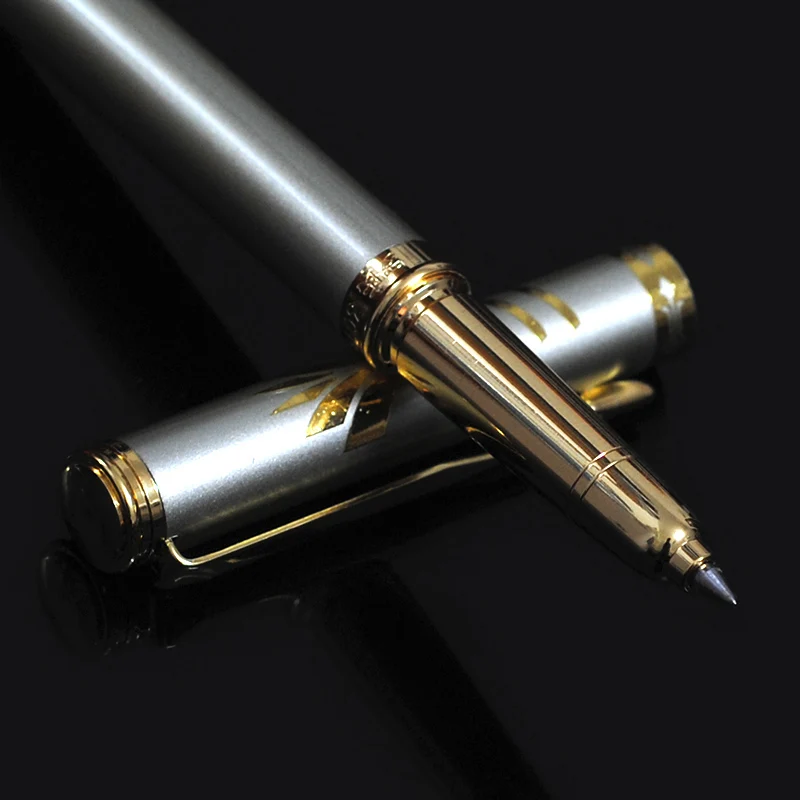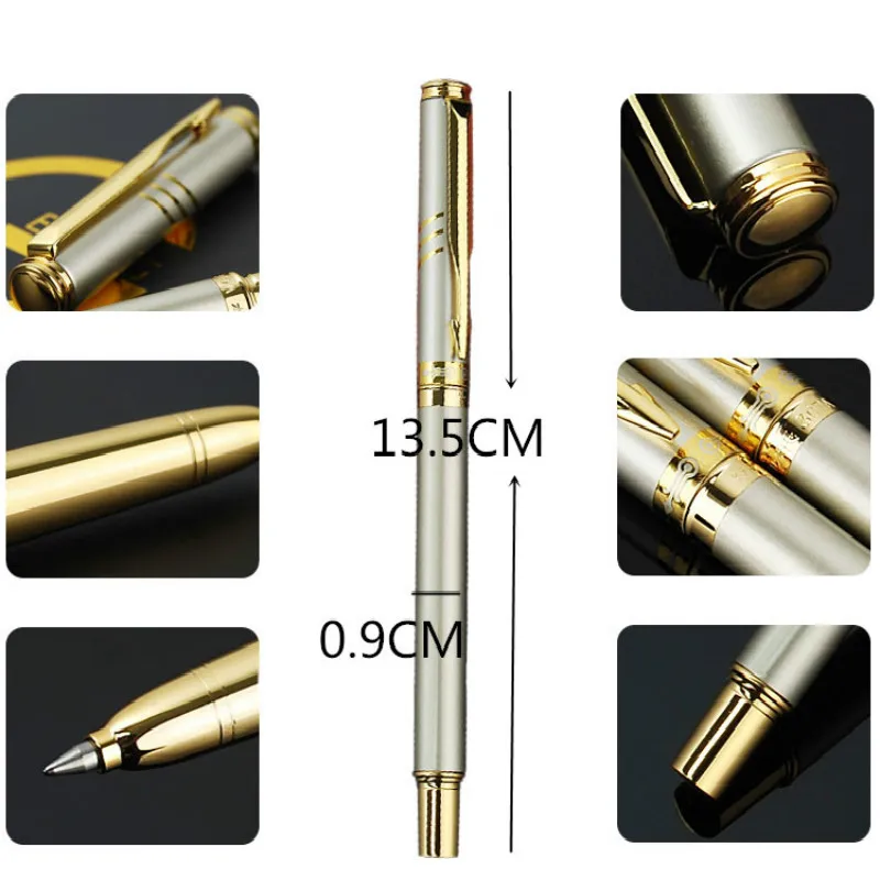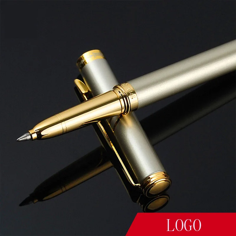Бесплатная Лазерная металлическая ручка с именем логотипа на заказ Золотая деловая нейтральная офисная ручка для подписи