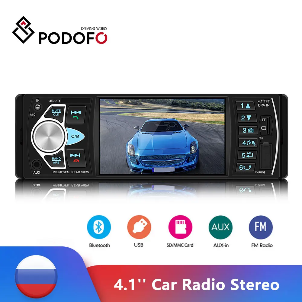Автомобильный радиоприемник Podofo 1din, стерео, 4,1 дюйма, Bluetooth, FM, MP3, Авторадио, мультимедийный плеер, 1 Din, аудио, стерео, USB, FM, резервный монитор