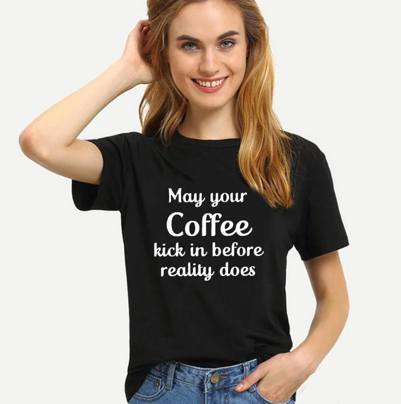 Женская футболка с коротким рукавом, круглым вырезом и надписью May your Coffee