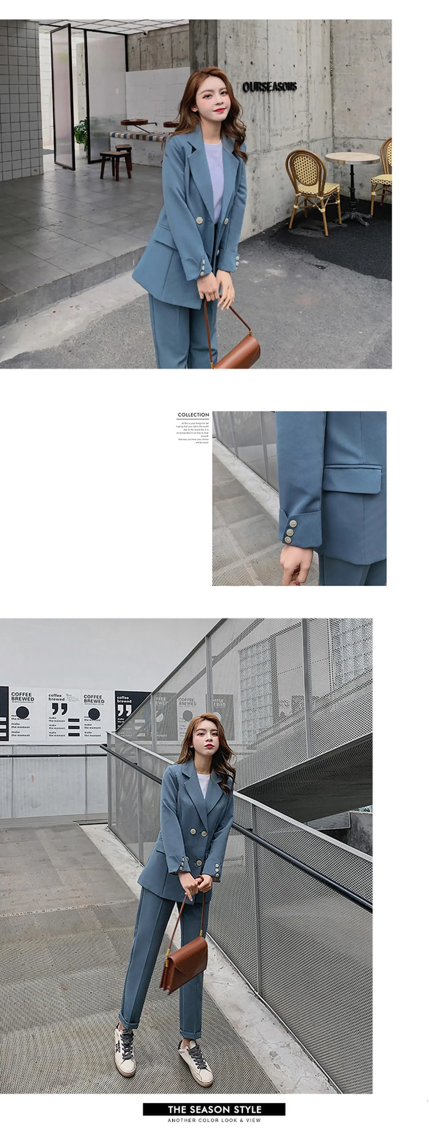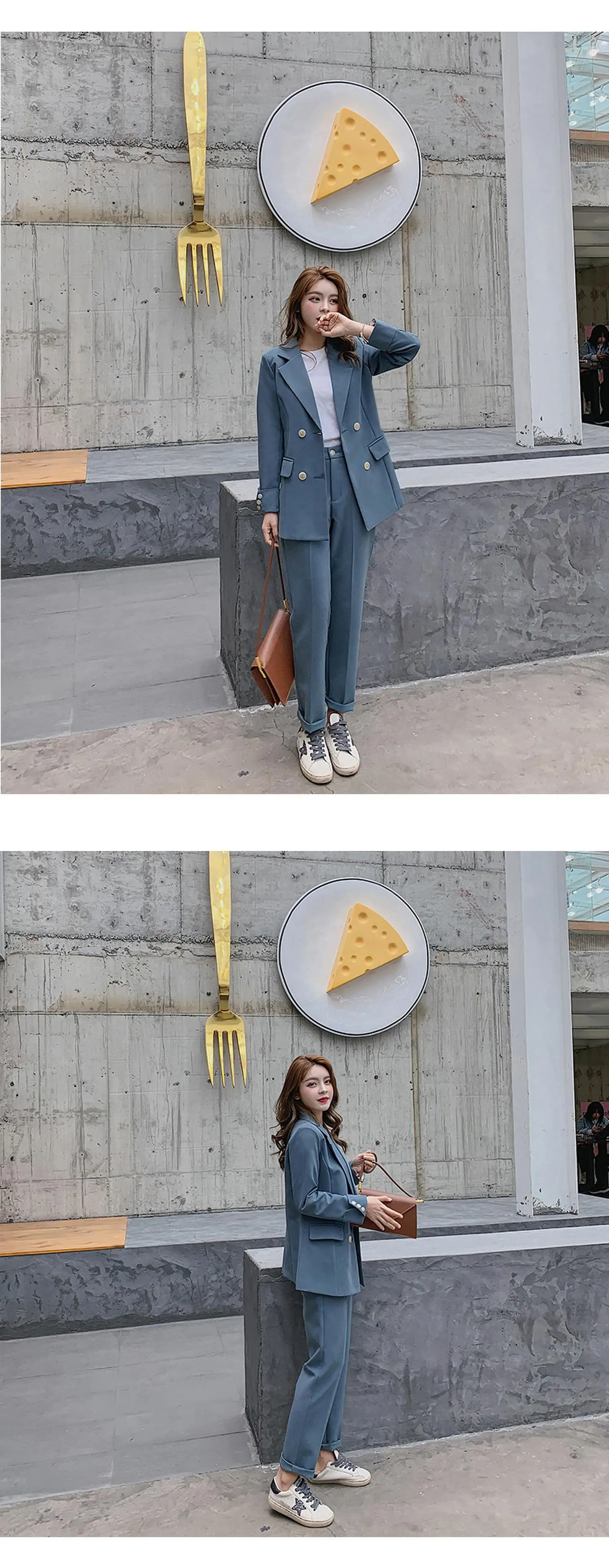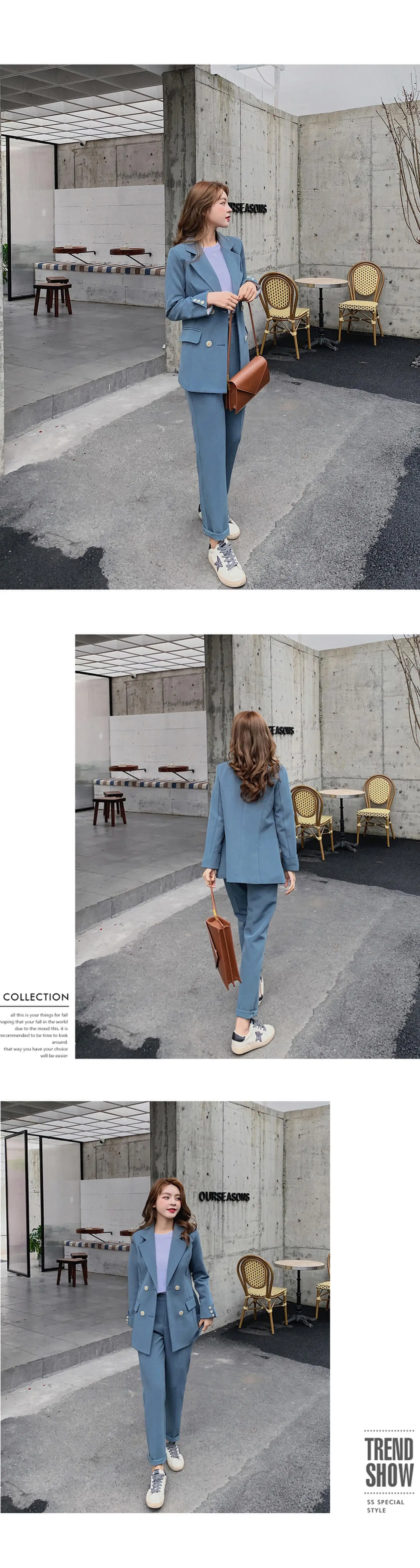 Женский весенний элегантный костюм с блейзером, брючный костюм для офиса, деловой костюм с брюками, повседневный пиджак с длинным рукавом + брюки, комплект из двух предметов