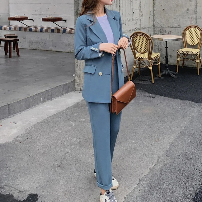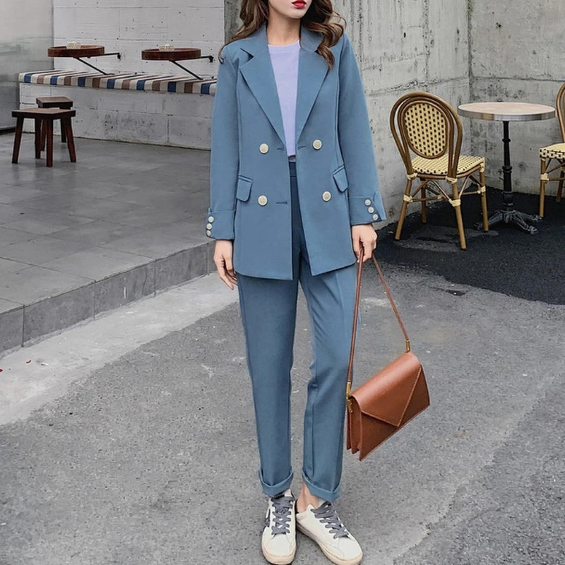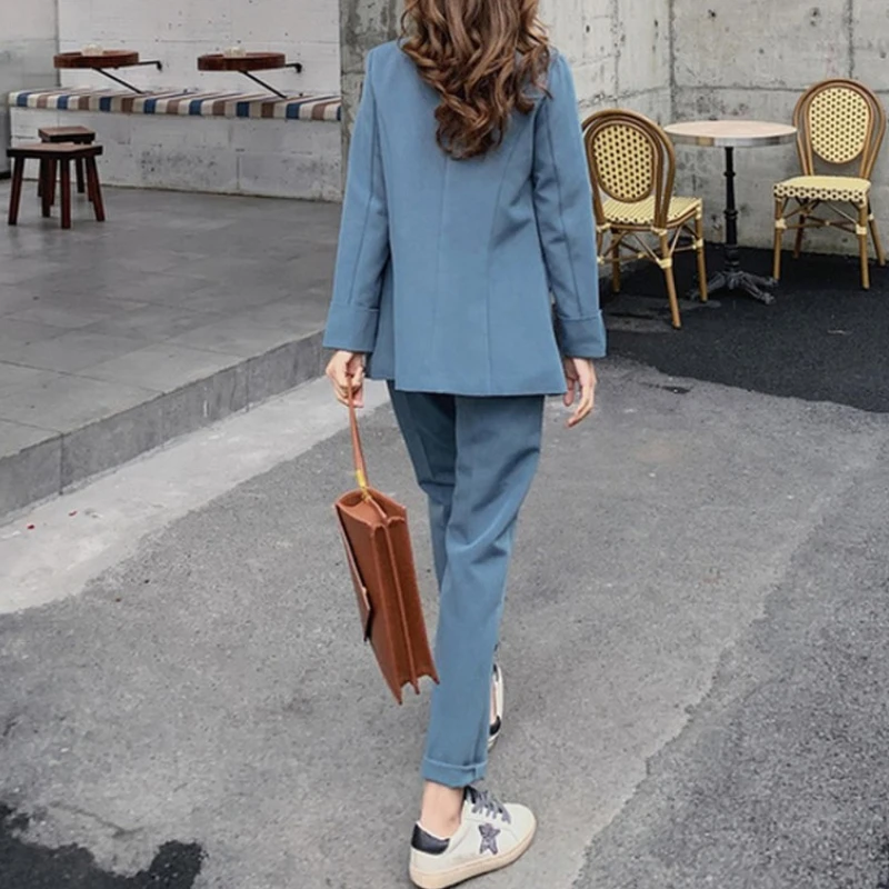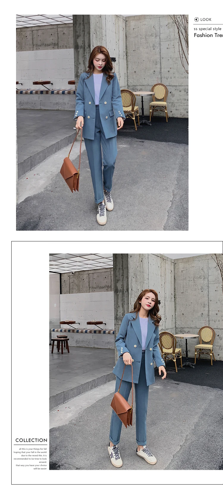Женский весенний элегантный костюм с блейзером, брючный костюм для офиса, деловой костюм с брюками, повседневный пиджак с длинным рукавом + брюки, комплект из двух предметов