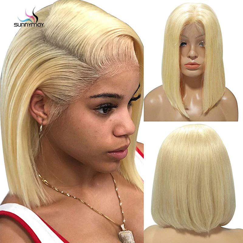 Светлые волосы Sunnymay, #613, парики боб из натуральных волос на фронтальной сетке, 150% дюймов, 13x4 дюймов, 13x6 дюймов, Короткие парики Реми
