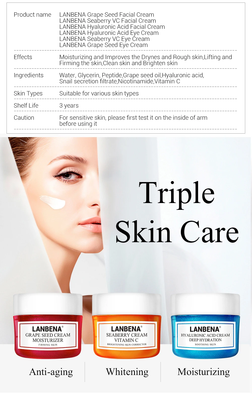 LANBENA крем для лица крем для глаз уход за кожей Гиалуроновая Кислота Витамин С увлажняющий отбеливающий против старения лечение акне укрепляющий 2 шт