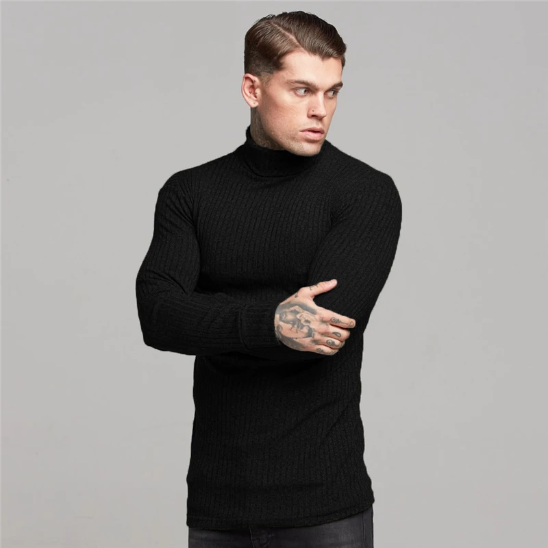 Осенне-зимние модные мужские тонкие свитера с высоким воротом, повс...