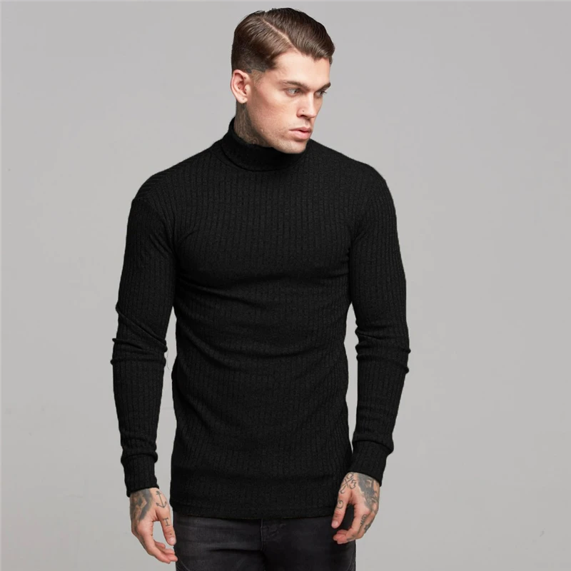 Новый осенне-зимний тонкий мужской свитер с воротником под горло, п...