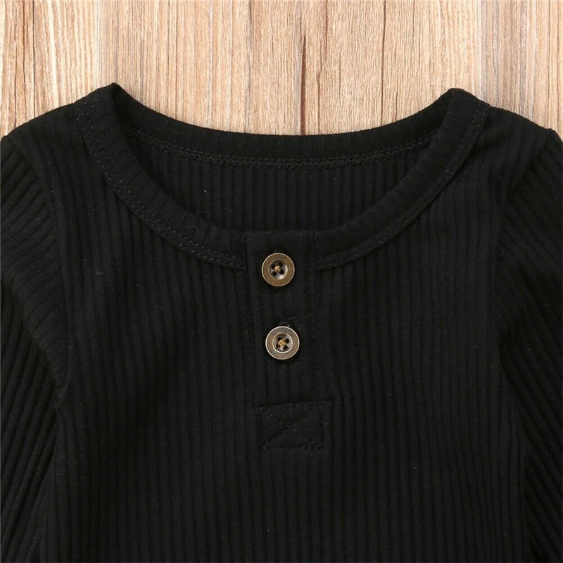 Новый Повседневный однотонный милый Трикотажный Хлопковый комбинезон для новорожденных мальчиков и девочек, комбинезон с длинными рукавами и пуговицами, одежда для детей от 0 до 24 месяцев