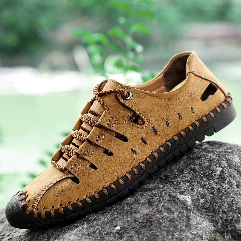 Сандалии мужские сетчатые дышащие, натуральная кожа, повседневная о...