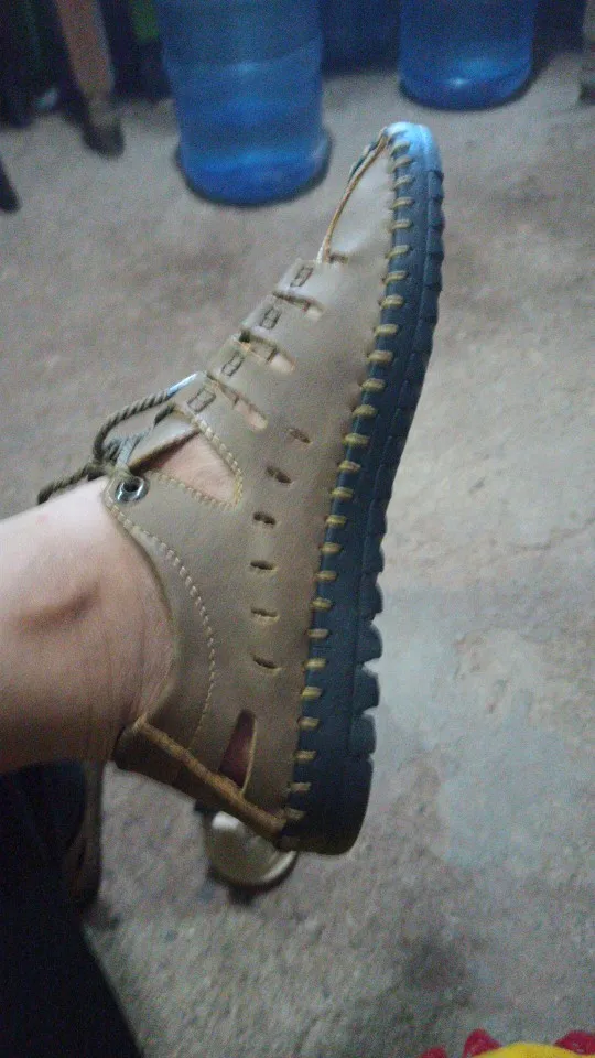 Сандалии мужские из натуральной кожи, дышащие, летняя повседневная ...