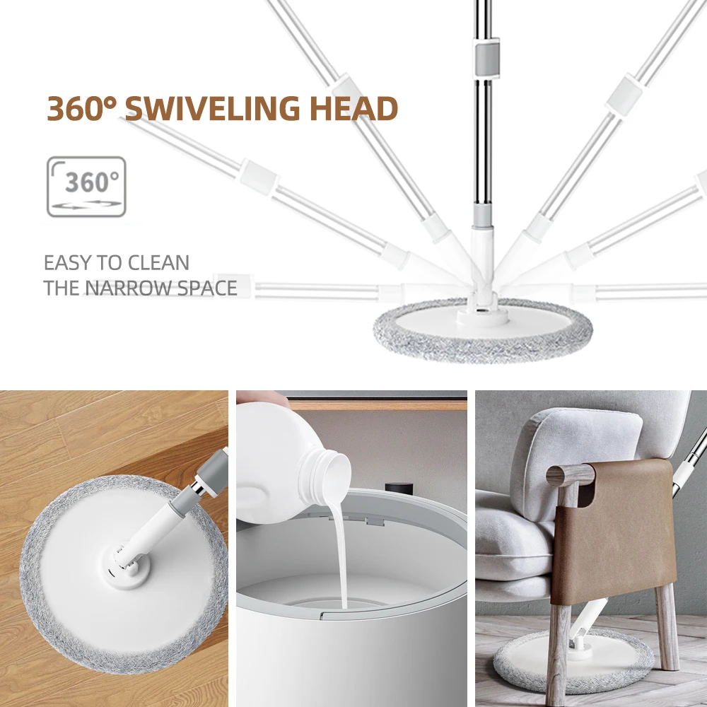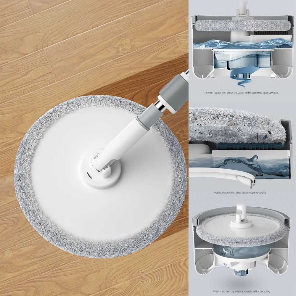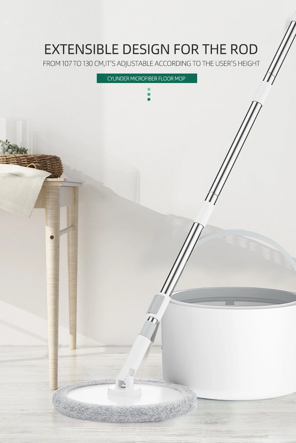 Волшебная швабра с микрофиброй, с круглым ведром, регулируемая ручка, бытовой очиститель для плитки, система потока картона, 360 чистящие инструменты