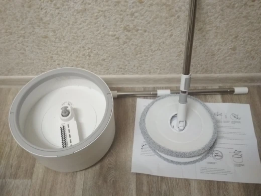 швабра понравилась своей функциональностью, ручка удобна только при росте не выше 170 см. единственное не хватает после окончания мытья слива в ведре. ведро внутри с фильтром имеет выемки, где после слива остаётся мусор, неудобно. приходится сливать неоднократно, либо вытирать тряпкой сухой. есть отметка для уровня воды, более наливать не стоит тряпка не отжимается хорошо, вода течет. отмывает пол качественное, добротно. вода после двух смен ведра была ещё грязной. обычной шваброй так не получается. считаю что покупка удачная, не смотря на то, что круглая, достает углы.пришла за 2 дня в Г.Воронеж