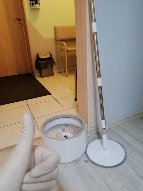 Швабра отличная! Достаточно большая! Ведро легкое и из-за небольшого количества воды удобно поднимать и сливать! Действительно хорошо очищает и отжимает! Легкая, маневренная, хорошо вытерает все! Влагу впитывает и собирает волосы и даже пыль. Но, лучше перед мытьем полов их пропылесосить! Рекомендую всем! Благодарю магазин за удобный и качественный товар! Пришла за неделю в 39 регион. Упакована хорошо!