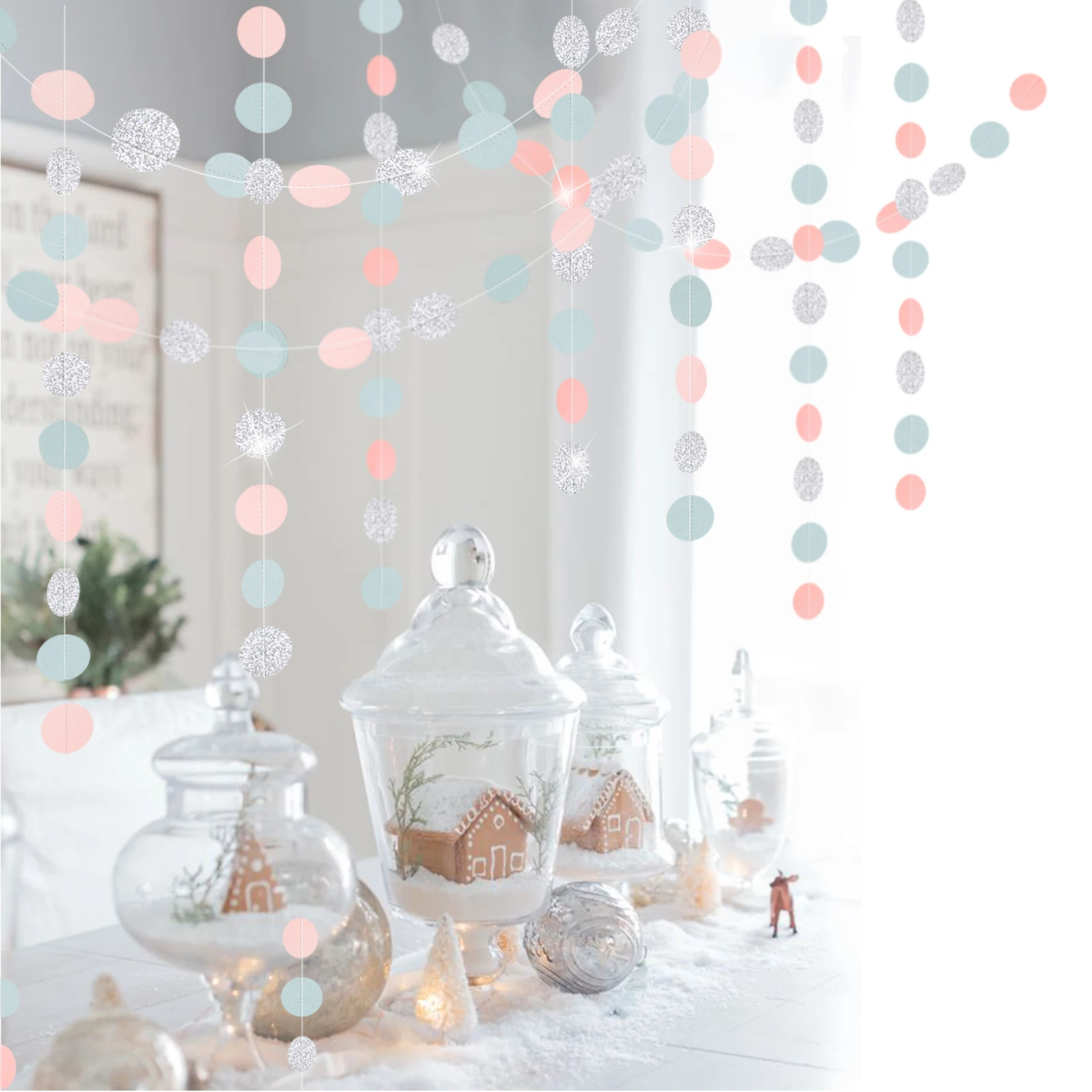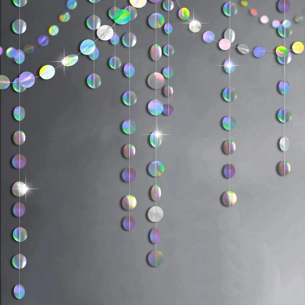 Уникальный дизайн-эта великолепная круглая Гирлянда-привлекательное украшение для вашего дома или вечерние, эти блестящие круглые точки изготовлены из высококачественного картона и ручной работы с прочной серебряной ниткой.
