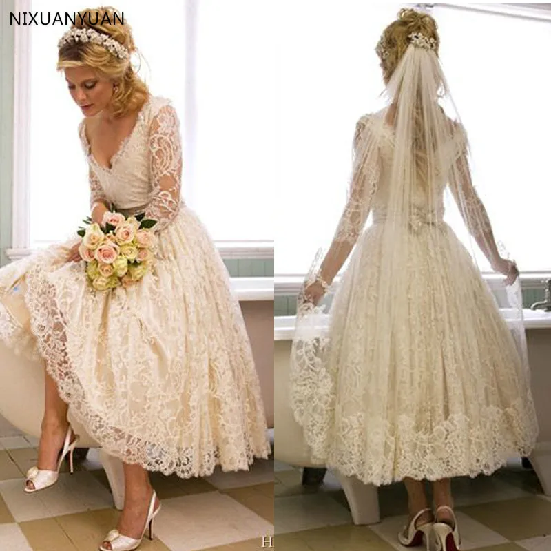2019 кружевное свадебное платье, благородное Короткое свадебное пла...