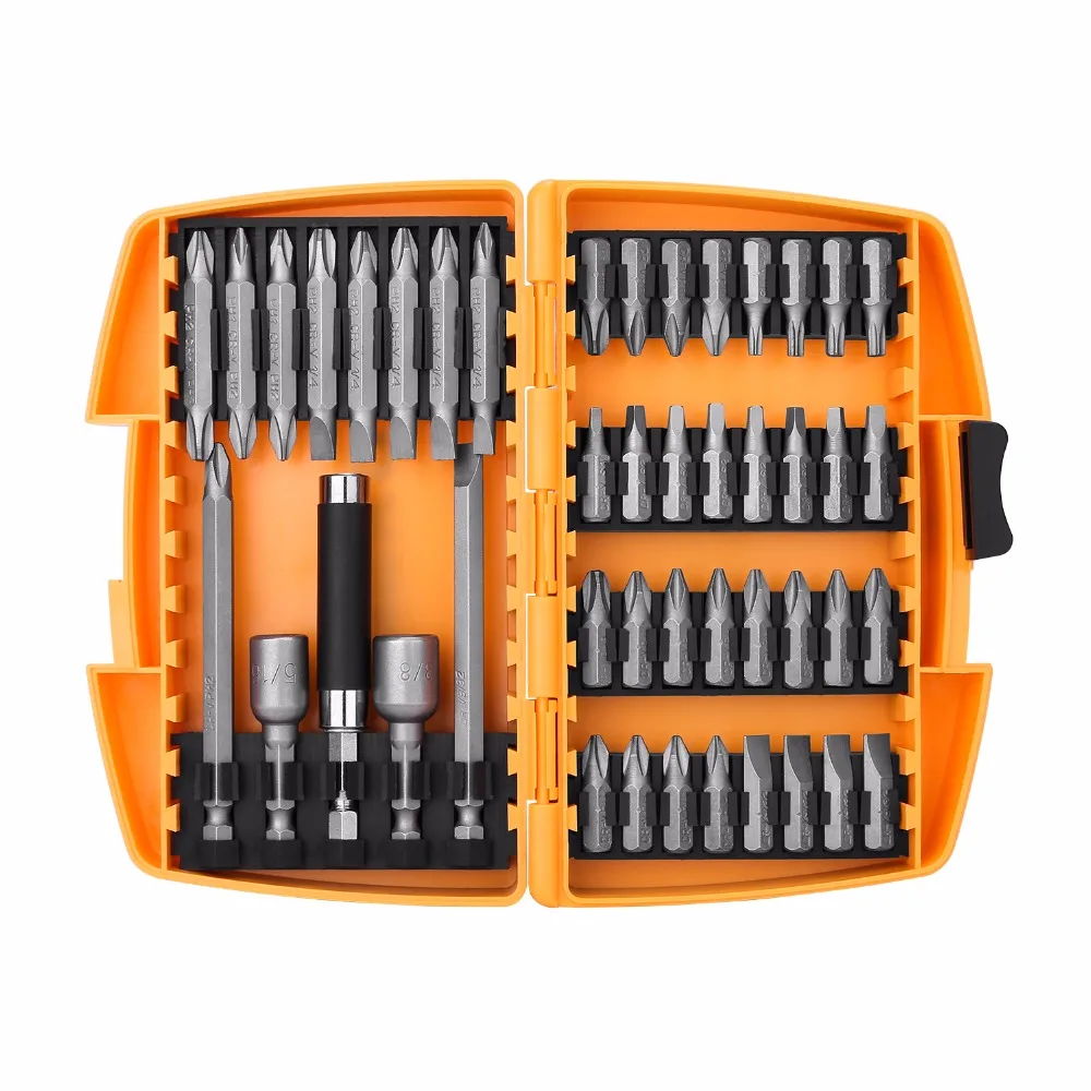 -Набор отверток-45 шт.Этот полный комплект содержит аксессуары для важных приложений для бурения и вождения винтов, которые отвечают вашим различным требованиям к DIY приложениям.-Твердый ящик для храненияПластиковая коробка PS более прочная, устойчивая к падению и Влагонепроницаемая, легкая для переноски и подвешивания; Все детали были в порядке и набор был завершен, хорошо организован, чтобы предотвратить рассеянные и запутанные.-Прочный материалВысококачественная сталь Cr-V для высокой твердости и долговечности, которая уменьшает износ, обеспечивает долговечность и устойчивость к коррозии.-Широкое использование-Щелевые биты, двухсторонние биты, Phillips или squareВы сможете найти все аксессуары для отверток для наиболее распространенных приложений в этом наборе. С 46 штук на выбор, вы уверены, что сможете найти только тот, который вам нужно, чтобы сделать работу.