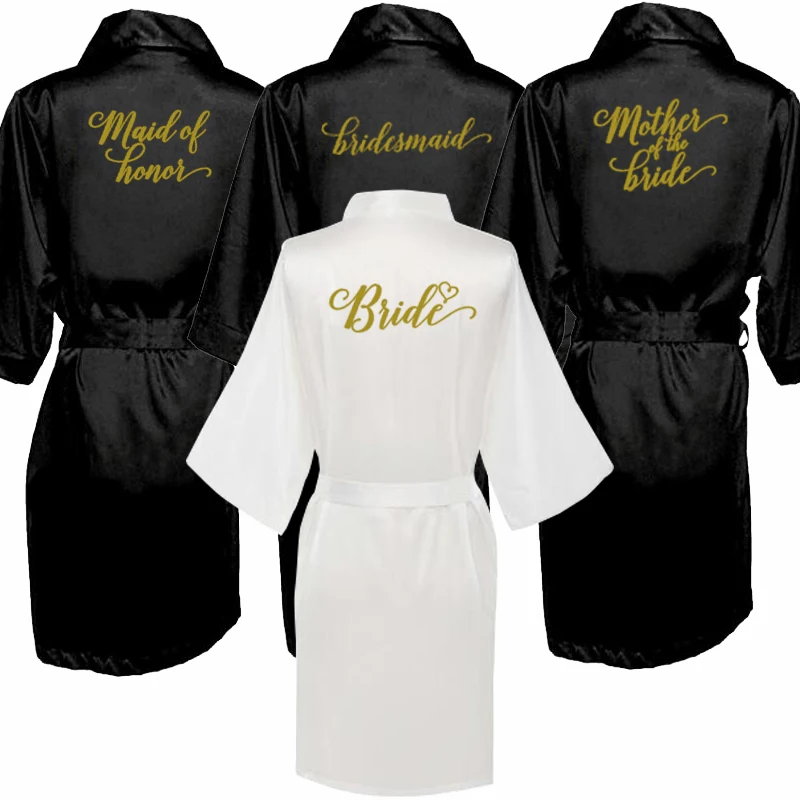 Сексуальный черный халат для невесты, Женский банный халат золотого цвета, Свадебные вечерние пеньюары для невесты, халаты для невесты