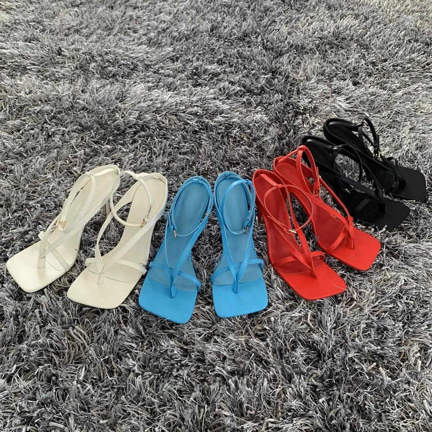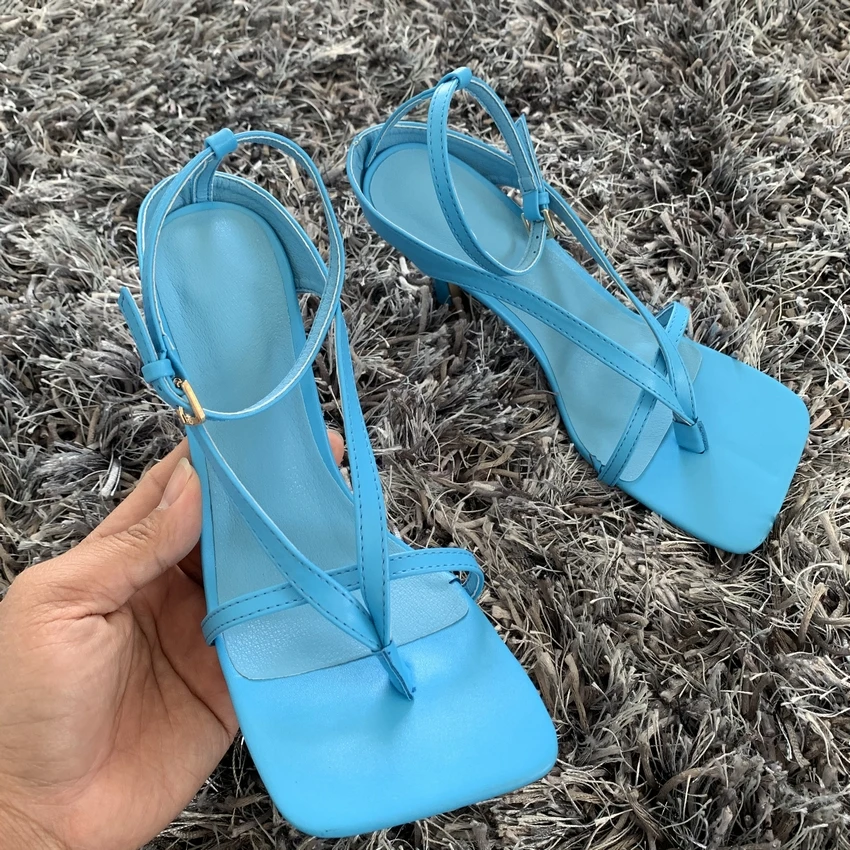 Сандалии-гладиаторы женские на высоком каблуке, босоножки с узким ремешком и застежкой на щиколотке, с квадратным открытым носком, на лето