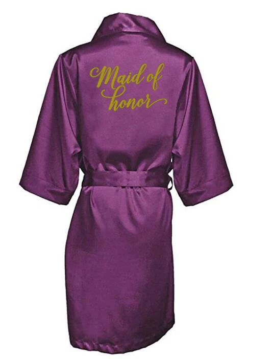 Новинка, фиолетовые Свадебные халаты, кимоно для подружки невесты в подарок на свадьбу, Женский Атласный халат, бабушка, халат для невесты