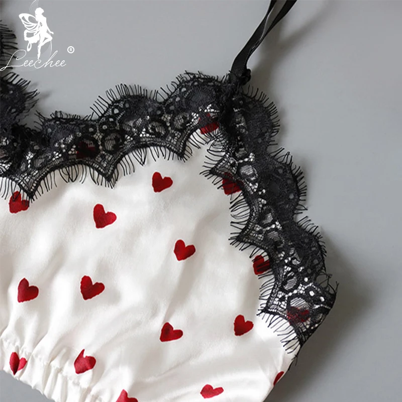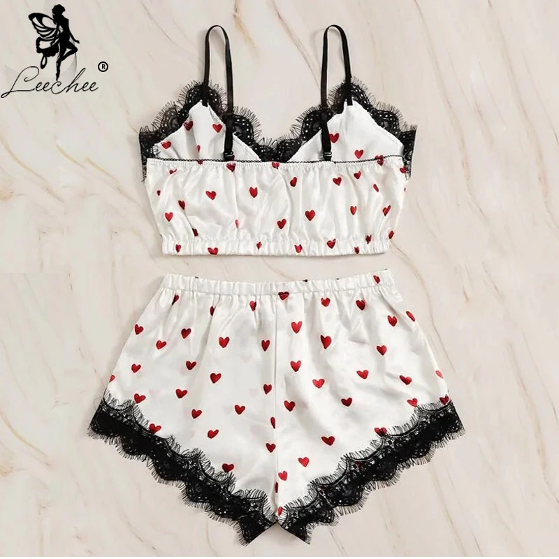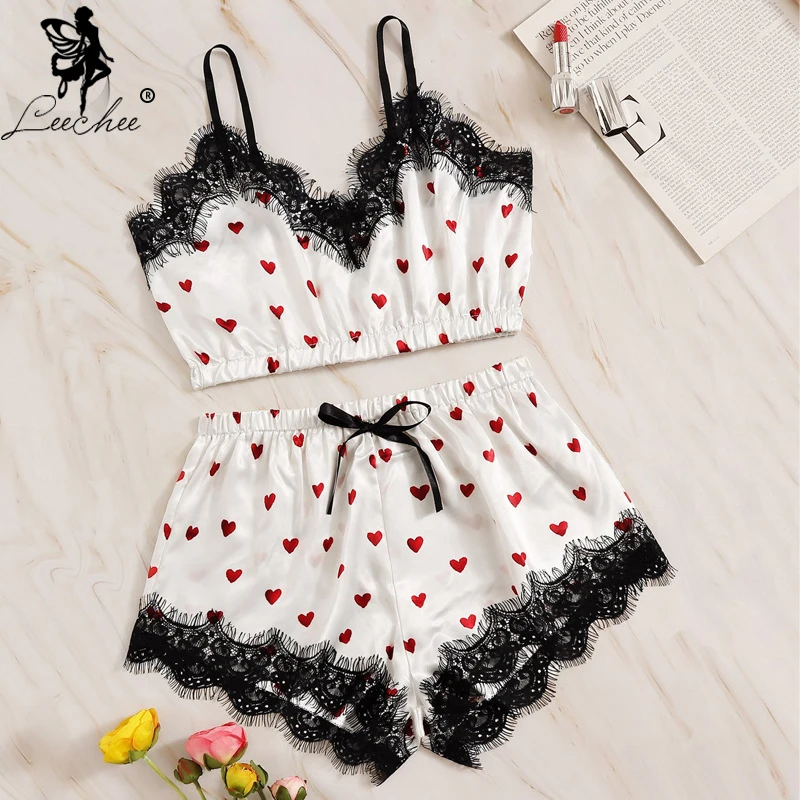 Leechee пижамы для женщин, атласное нижнее белье, сексуальное ночное белье, милые шорты, пижамный комплект, кружевные пижамы с ресницами, удобная Пижама mujer