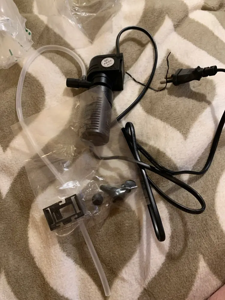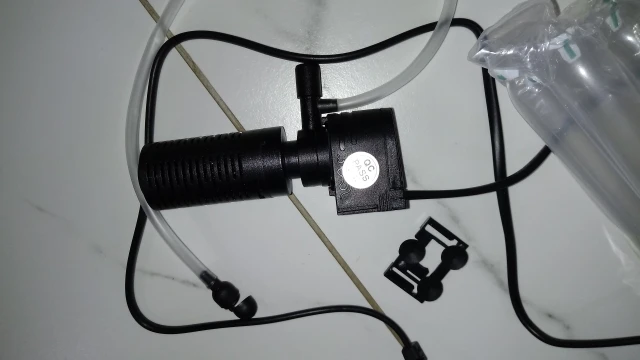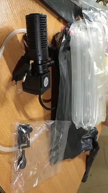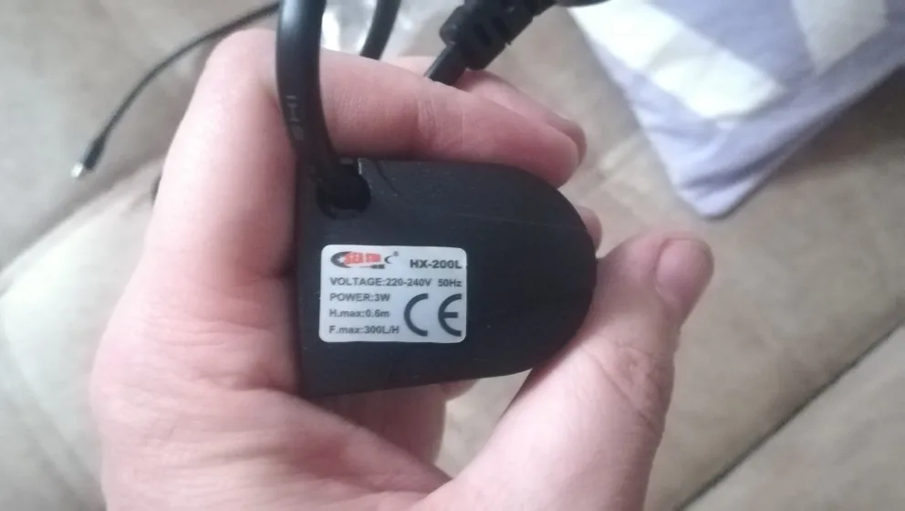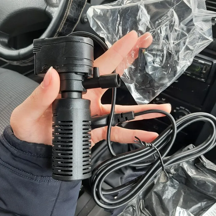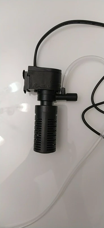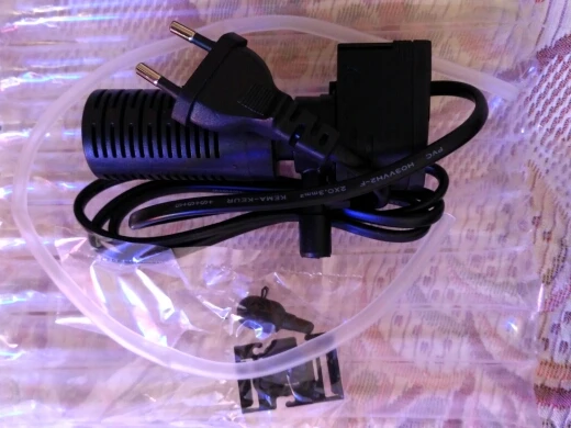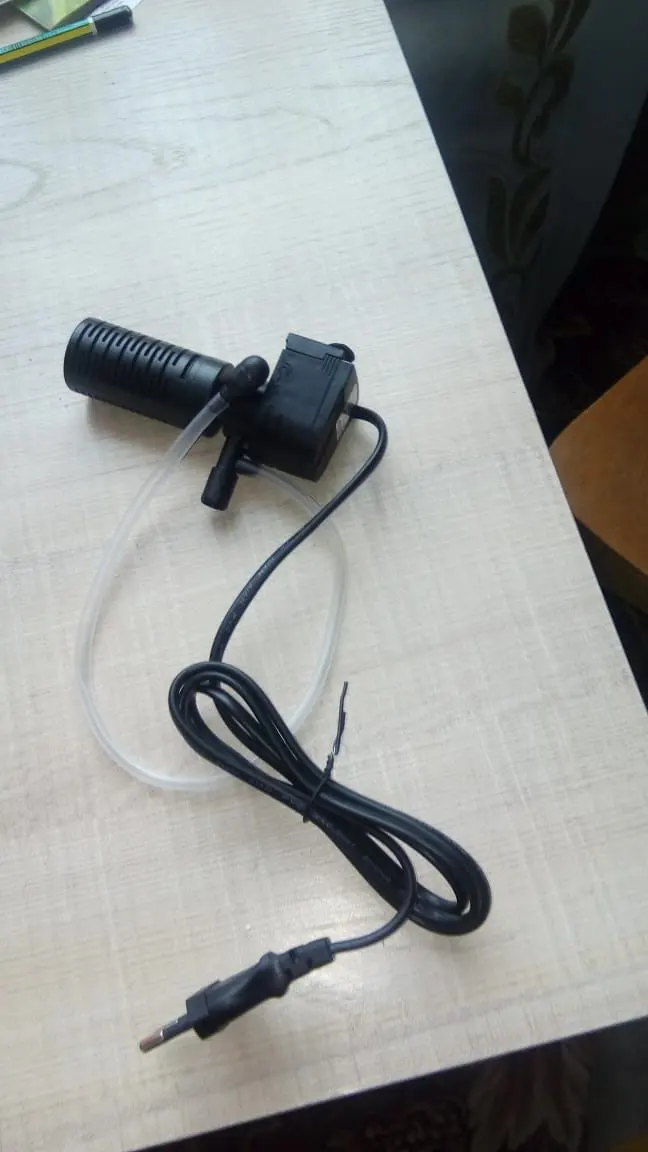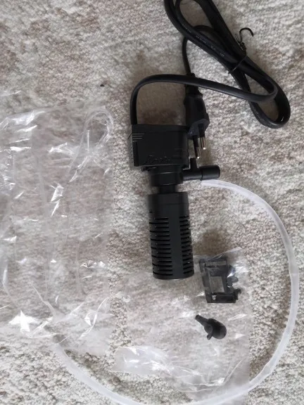 Доставка 3 недели. Помпа качает отлично, на аквариум 60 литров само то.