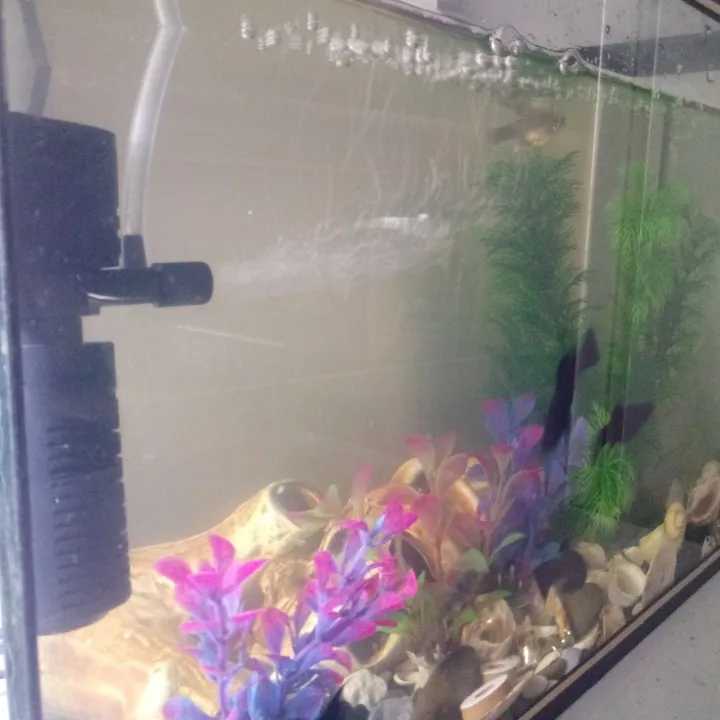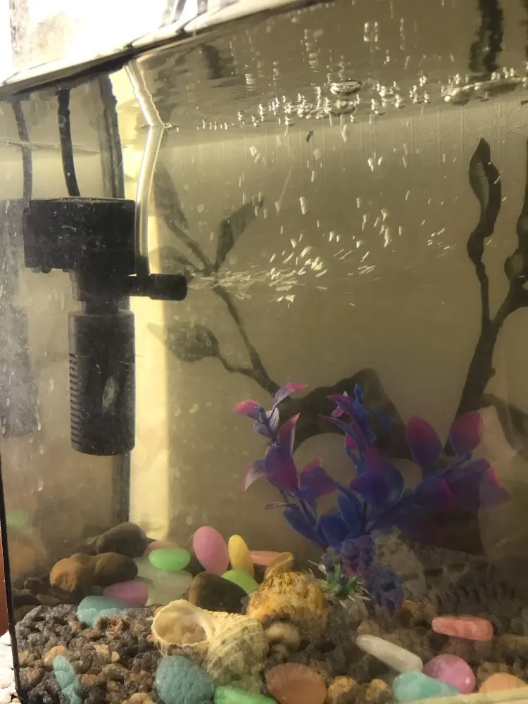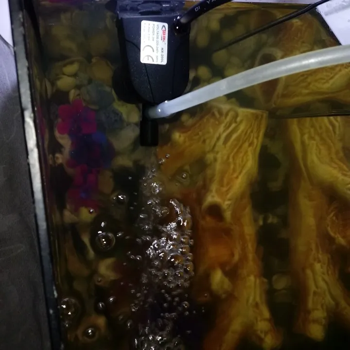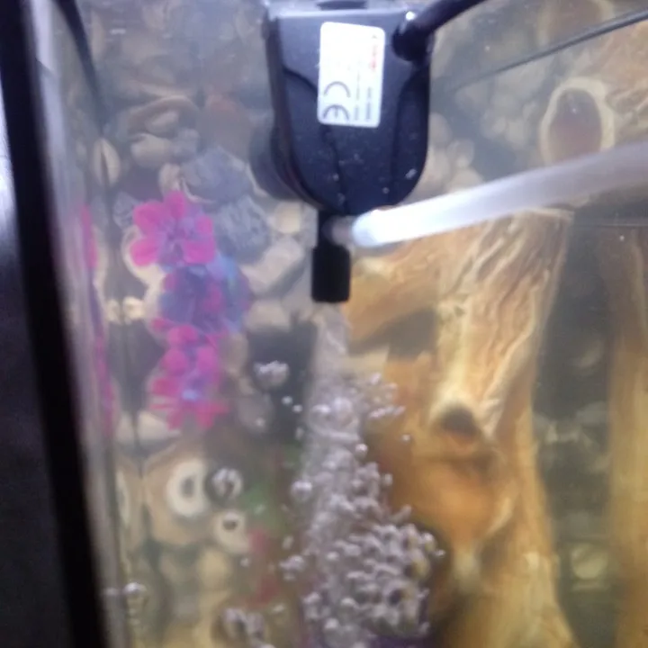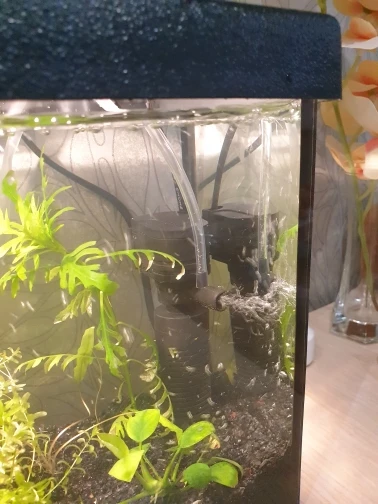 Много потока для мини-аквариума, но при накачивании выхода и использовании воздушного входа в качестве выхода воды с шлангом, отлично подходит для того, чтобы не растягиваться на Бетту.