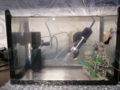Долгая доставка, маленький компактный, но очень шумный и быстро загрязняется, чистить удобно и быстро, лёгкий, чистить нужно каждые два дня иначе перестаёт работать,, чем то привлекает рыб они в него носики тычут.