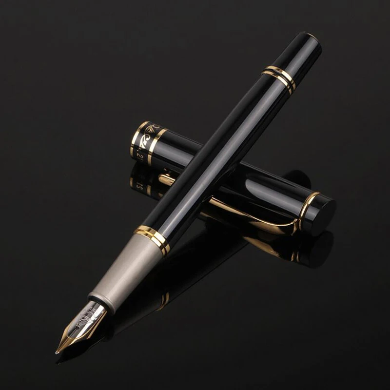 Ручка перьевая деловая Мужская, роскошная Металлическая черная ручка для письма, 2 ручки, подарок