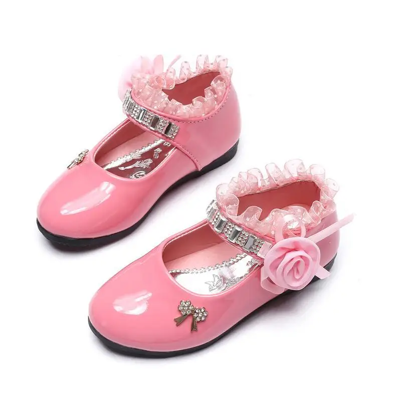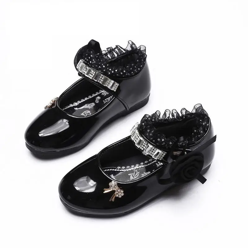 Новинка 2021 года; Обувь для девочек с цветочным принтом; Сезон весна-осень; Обувь принцессы из искусственной кожи с кружевом; Милые Стразы с бантом для От 3 до 11 лет; Обувь для малышей