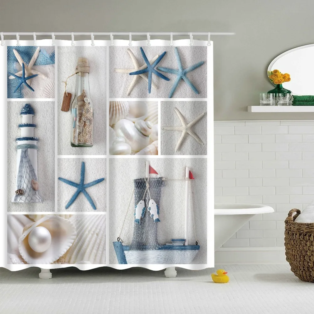 Штора для душа в скандинавском стиле, морской пейзаж, Пляжная ракуш...