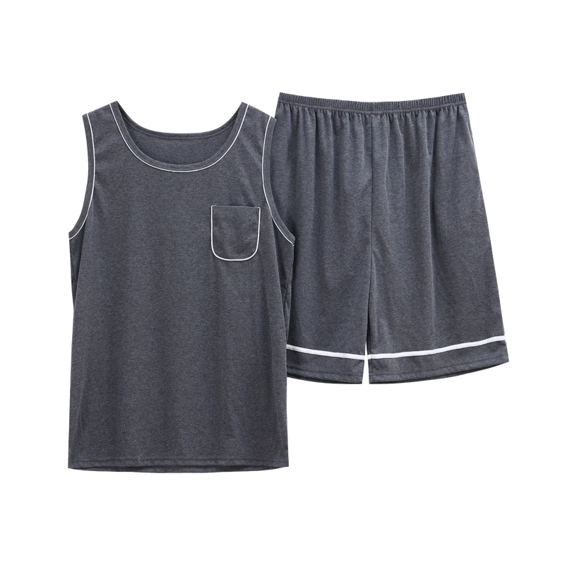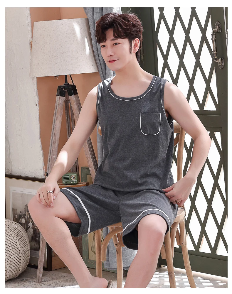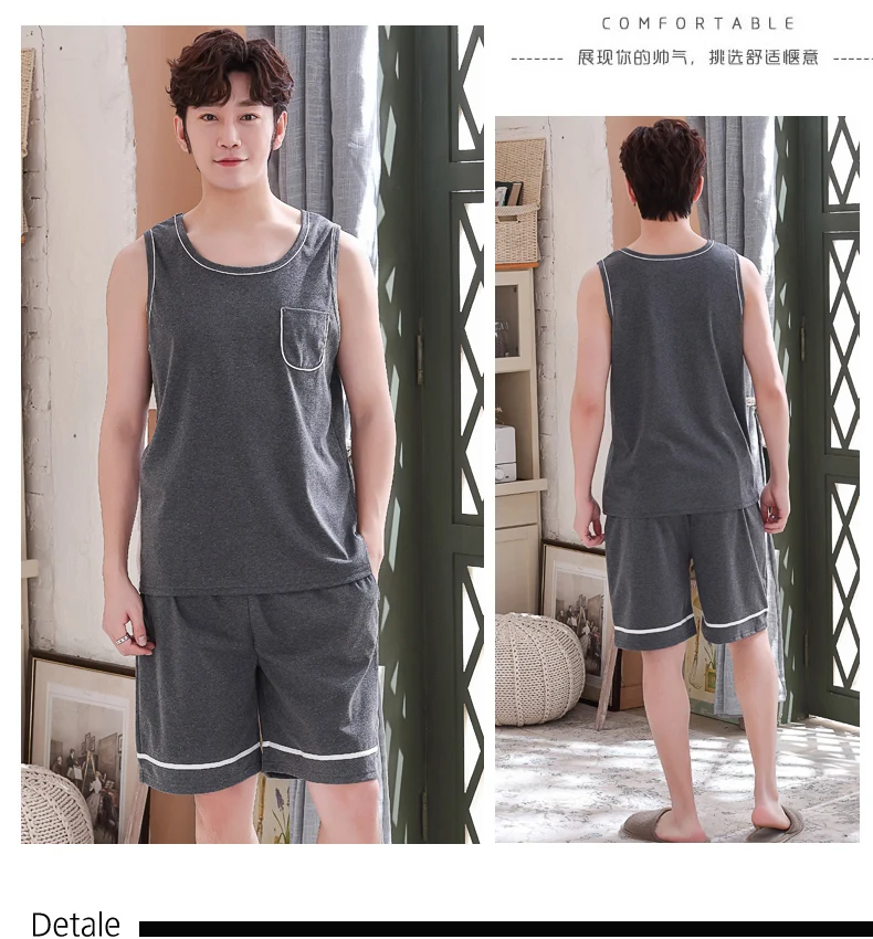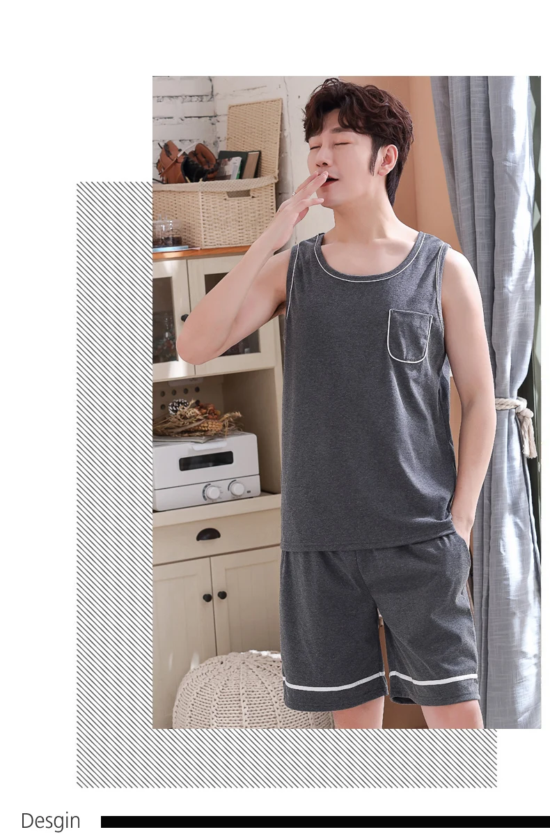 Мужской жилет из хлопка пижамный комплект на лето натуральный хлопок, одежда для сна, домашняя одежда серого цвета костюмы Простые Модные пижамы для мужчин и женщин; Пижама для детей L-XXXXL