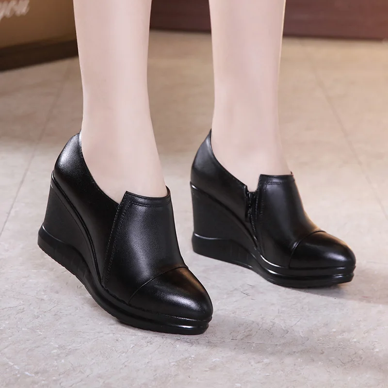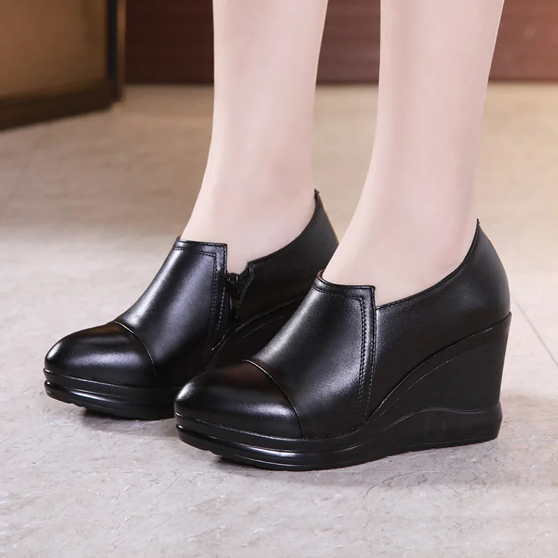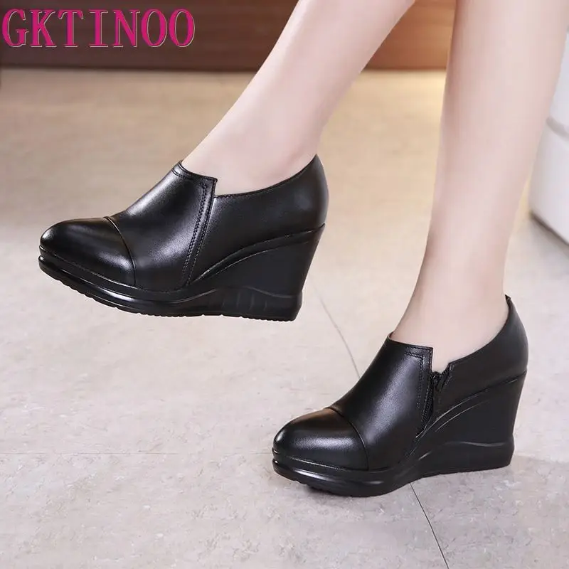 GKTINOO2022 г.; Весенние женские туфли-лодочки из натуральной кожи; Черные женские туфли на высоком каблуке с острым носком и на платформе