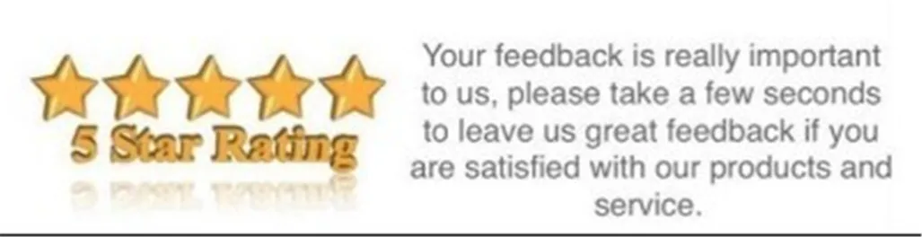 Нам нужна ваша помощь и полная поддержка, чтобы сохранить наш магазин в живых. Если ваш товар приходит в удовлетворительном состоянии, пожалуйста, оставьте нам отзывы «5 звезд». Это очень важно, и мы сделаем то же самое для вас!