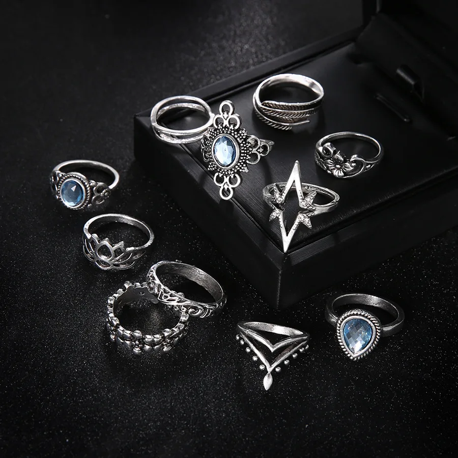 Женское Винтажное кольцо в стиле бохо, набор колец на сустав пальца на пальцы с кристаллами, перьями, лотосом, звездой, свадебные и вечерние ювелирные изделия, 11 шт.компл.