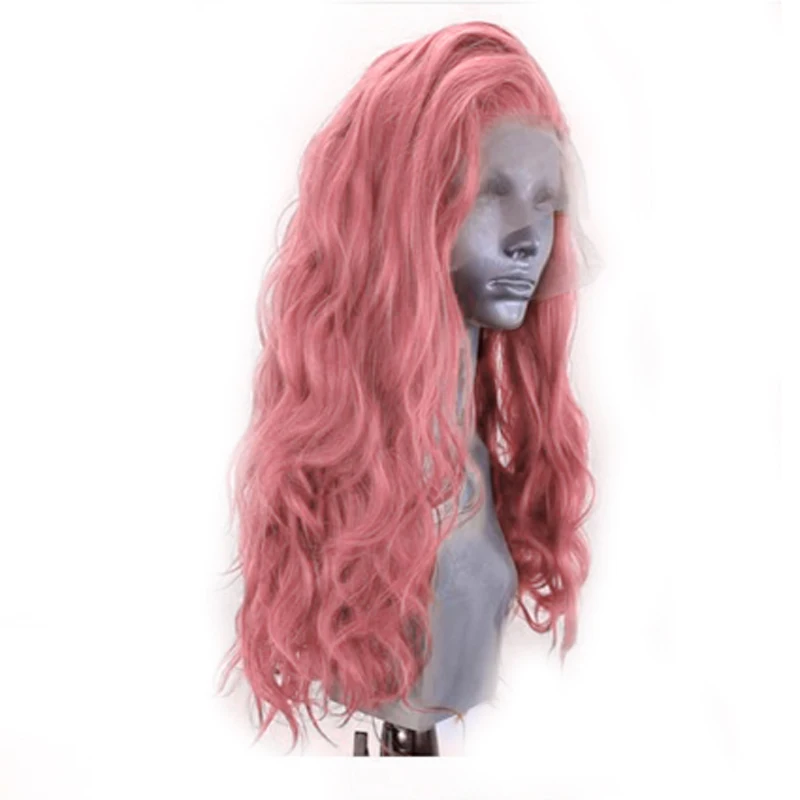 Парик длинный кудрявый розовый без клея, харизма, синтетический передний парик из натуральных волос, для косплея