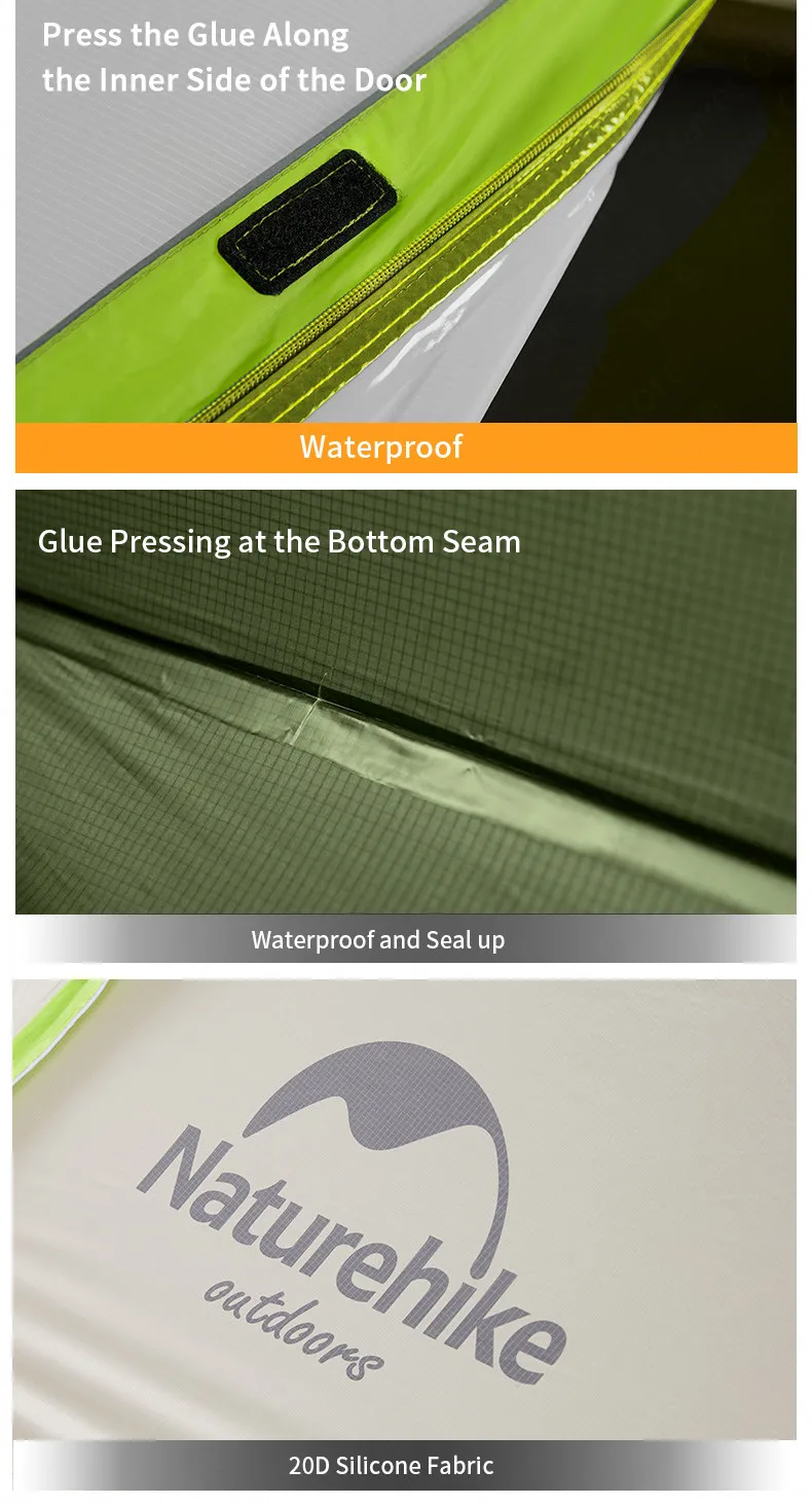 Внутренняя палатка: B3 марля + Водонепроницаемая 4000 мм + 20D/15D нейлоновая ткань для проверки