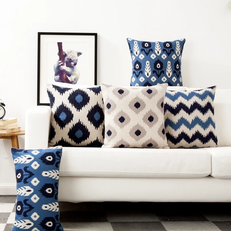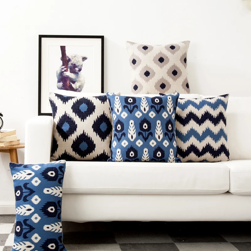 Синего и бежевого цветов Цвет в виде геометрических фигур детские штаны с геометрическим принтом Подушка Чехол для подушки украшения полоса для дивана Автомобильная поясничная наволочка