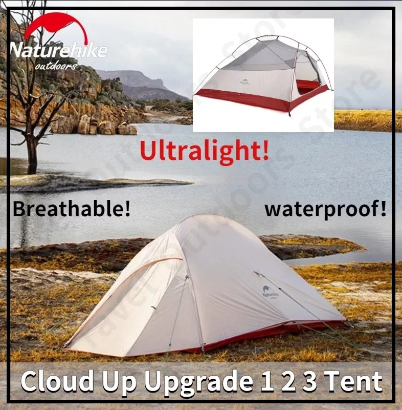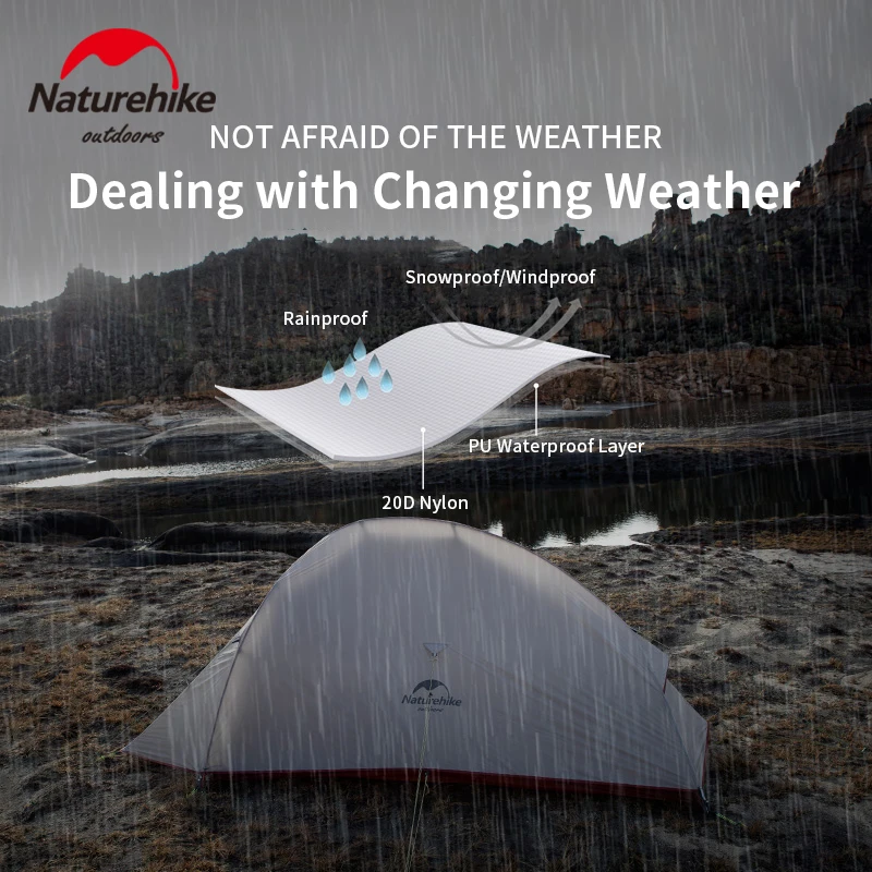 Палатка туристическая Naturehike Cloud Up, Модернизированная, на 1-3 человек, Ультралегкая, непромокаемая, из нейлона 20D, с ковриком, 4000 мм