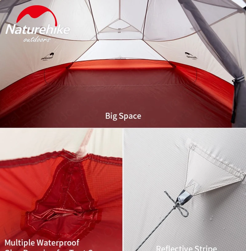 Внешняя палатка: 15D 420T нейлоновая двойная линия ткани (водонепроницаемая 5000 мм)