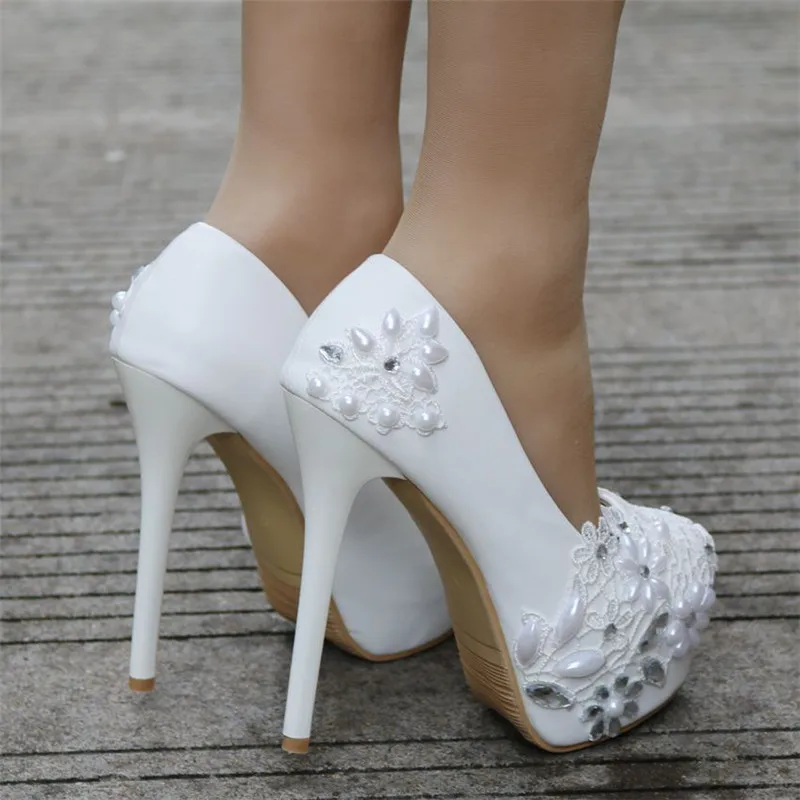 Новинка, свадебные туфли на высоком каблуке, свадебные туфли Стразы с белым кружевом, свадебные туфли, весна-лето, обувь для подружки невесты