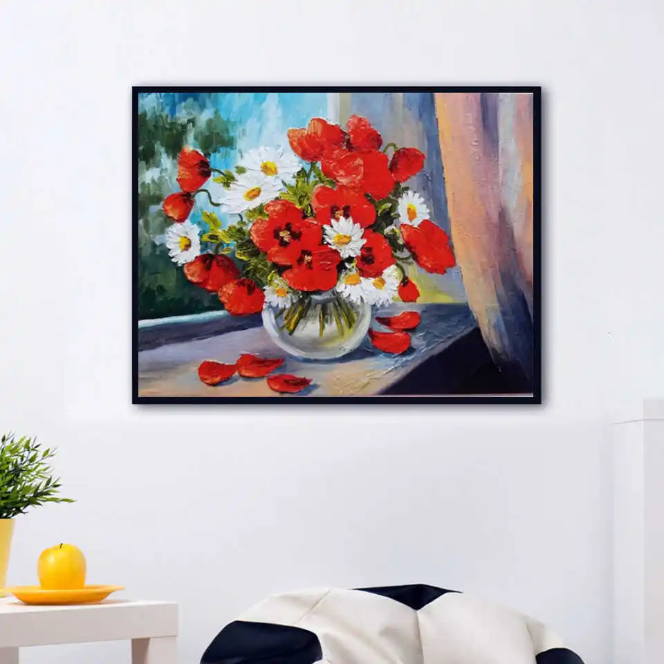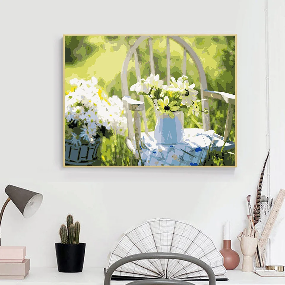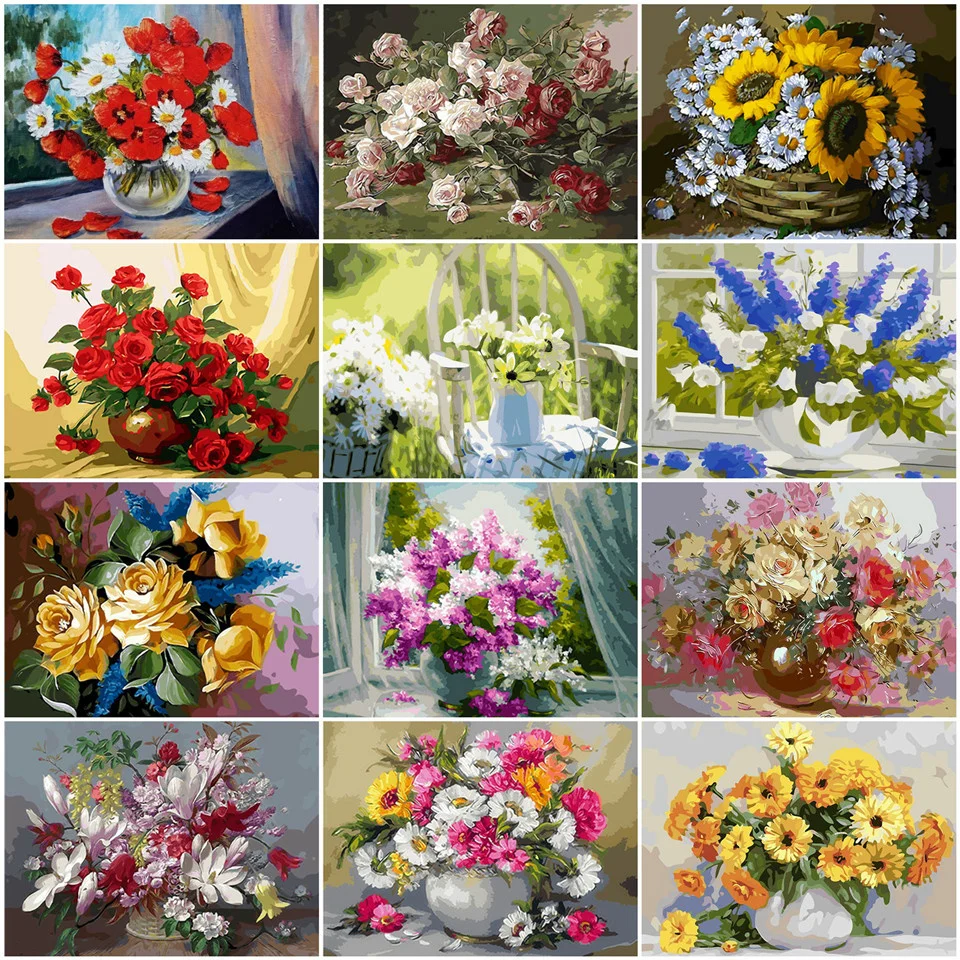 AZQSD взрослая Раскраска по номерам Цветок DIY Unframe настенное искусство акриловая краска масляная краска ing по номерам ваза домашнее украшение