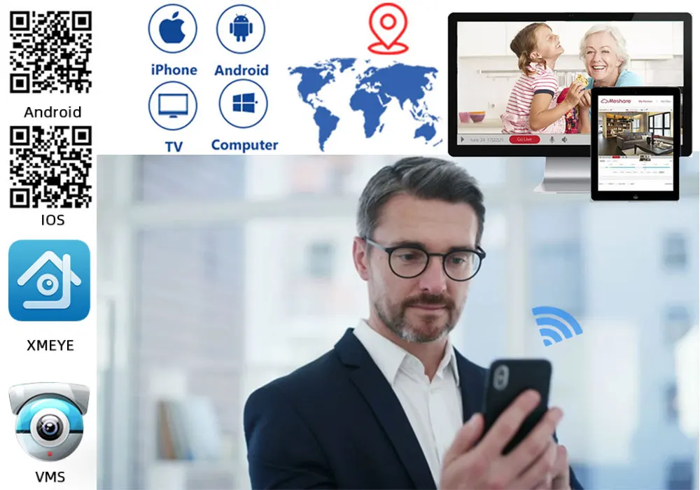 Простая настройка, всего 4 шага для просмотра мобильный телефон, просмотра видео в режиме реального времени из любого места и в любое время с помощью смартфона,Таблица или ПК с передовой технологией P2P, вы можете получить удаленный доступ к вашей системе в течение нескольких минут или меньше, нет необходимости в переадресации,Удаленный доступ никогда не был таким простым!