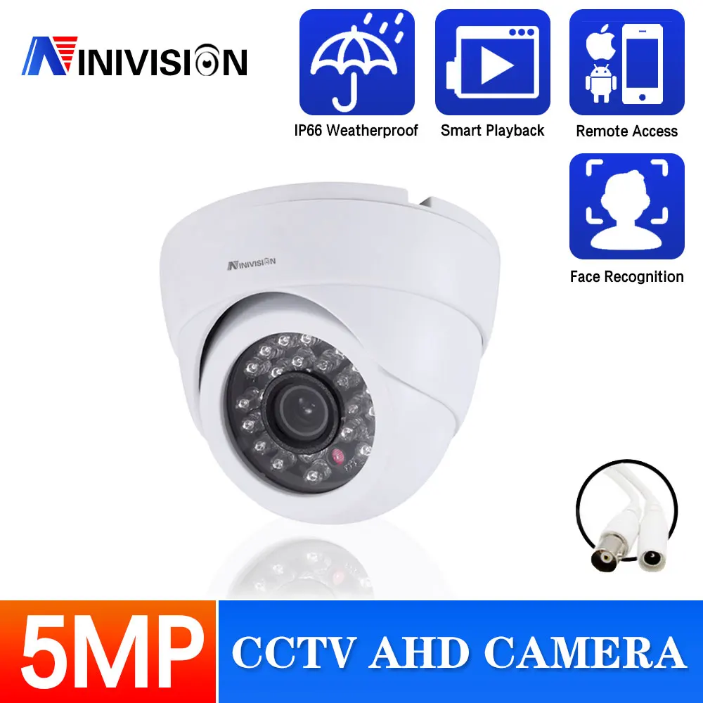 Камера видеонаблюдения H.265 5 МП, антивандальная HD-камера 5 Мп с функцией распознавания лица и движения, купольная AHD-камера с ИК-подсветкой и ночным видением