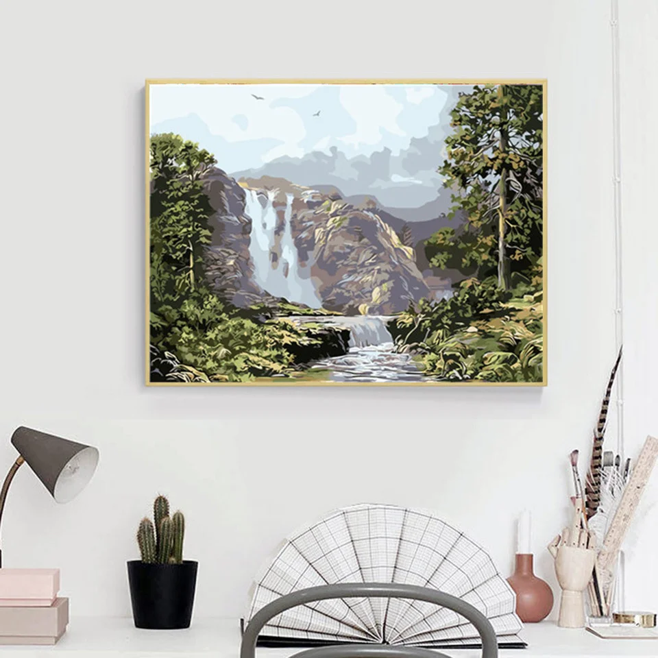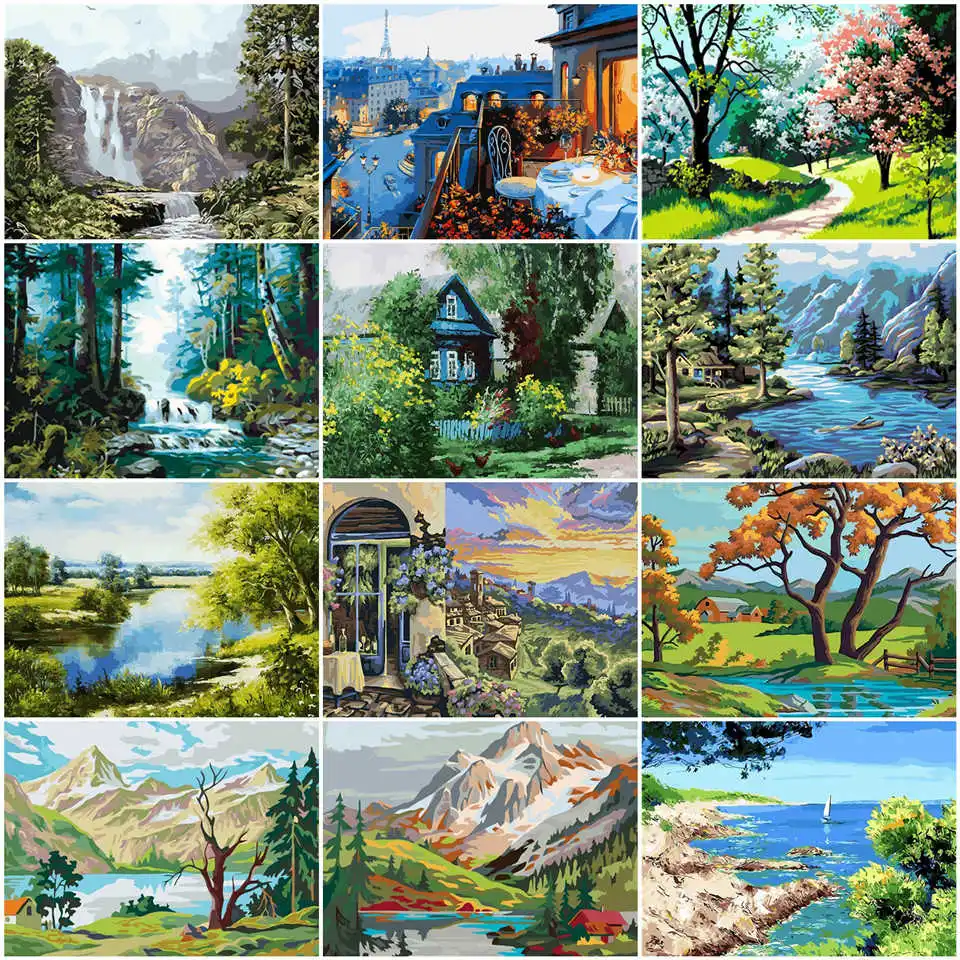 AZQSD для взрослых Unframe DIY Раскрашивание по номерам пейзаж акриловая краска наборы масляная краска ing по номерам дерево настенное искусство домашний декор