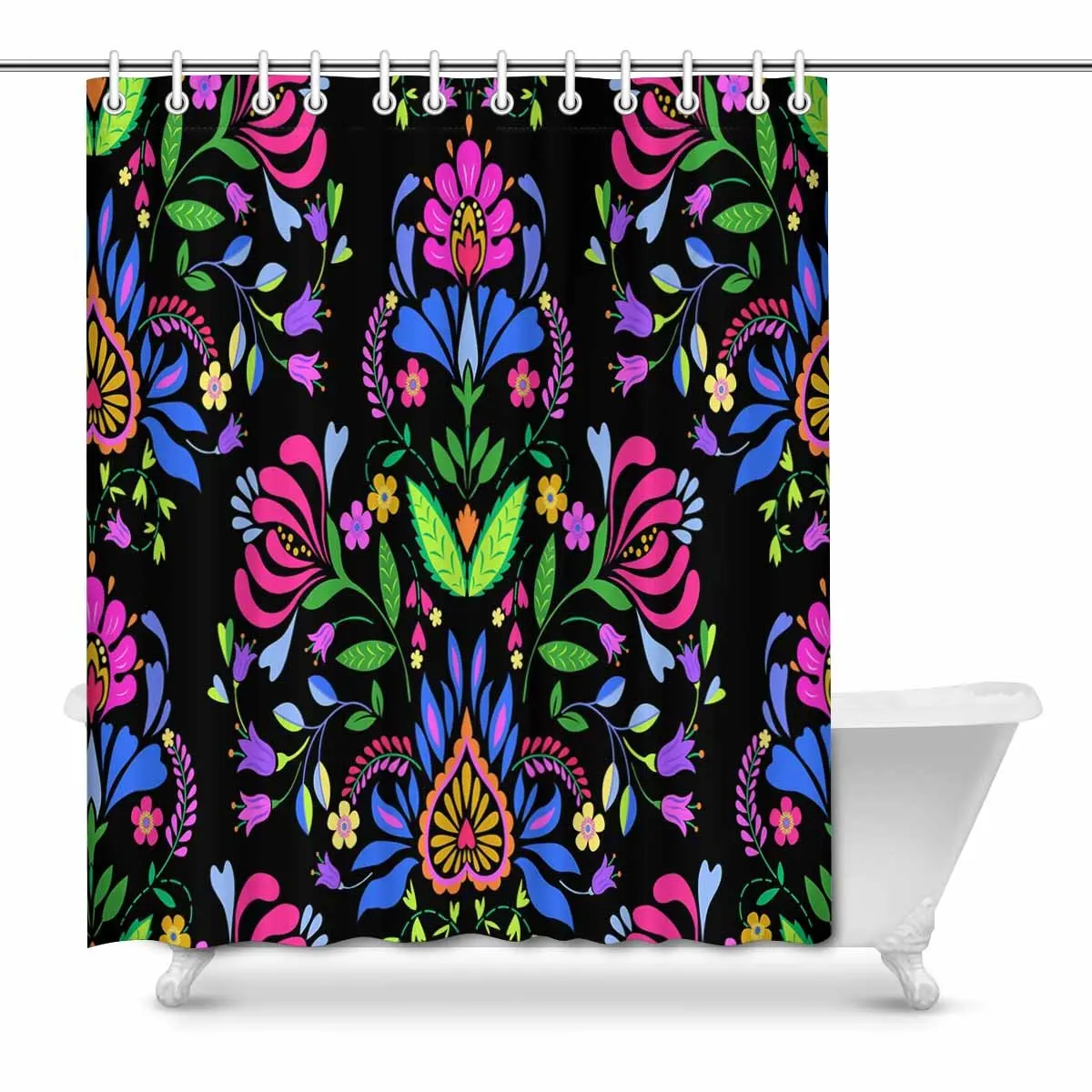Тканевая занавеска для ванной комнаты с этническим полированием и мексиканским влиянием