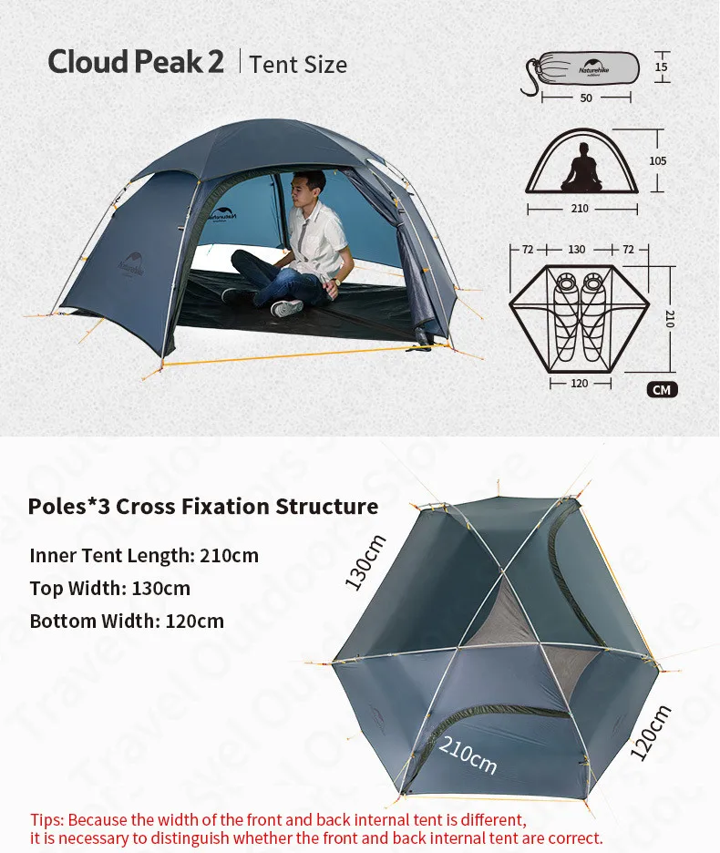 Палатка Naturehike Cloud Peak 2 15D туристическая Ультралегкая на 2-3 человек, 2,16 кг, 4 сезона