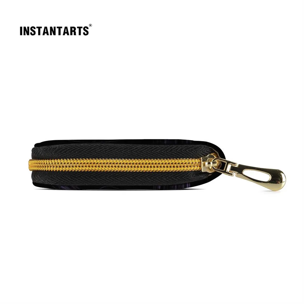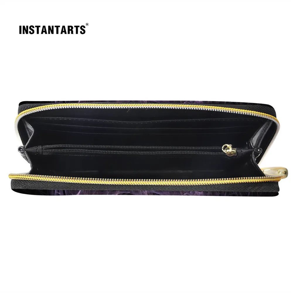INSTANTARTS, готические мужские роскошные длинные кошельки с принтом черепа и розы, функциональный держатель для карт, Обложка для паспорта, Дамский телефонный пакет, сумки для денег