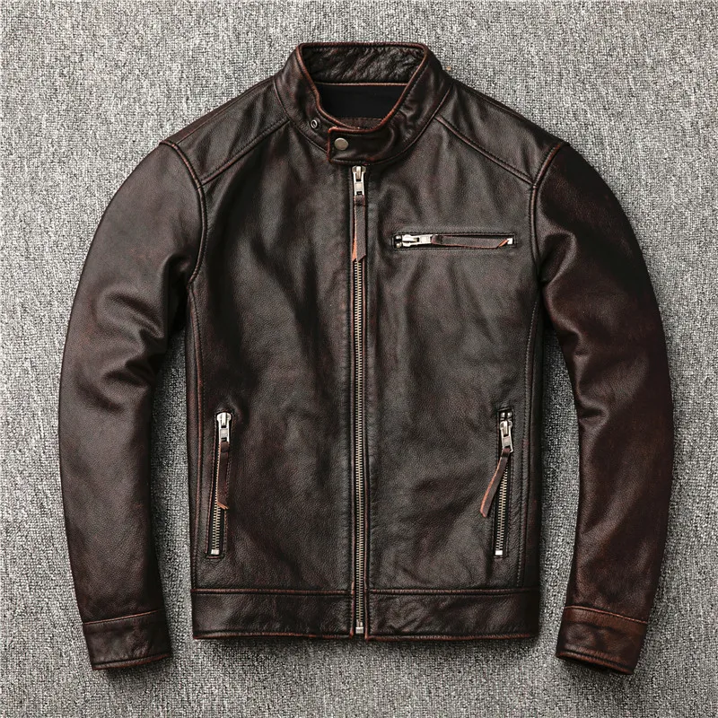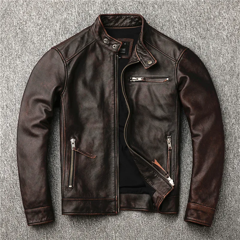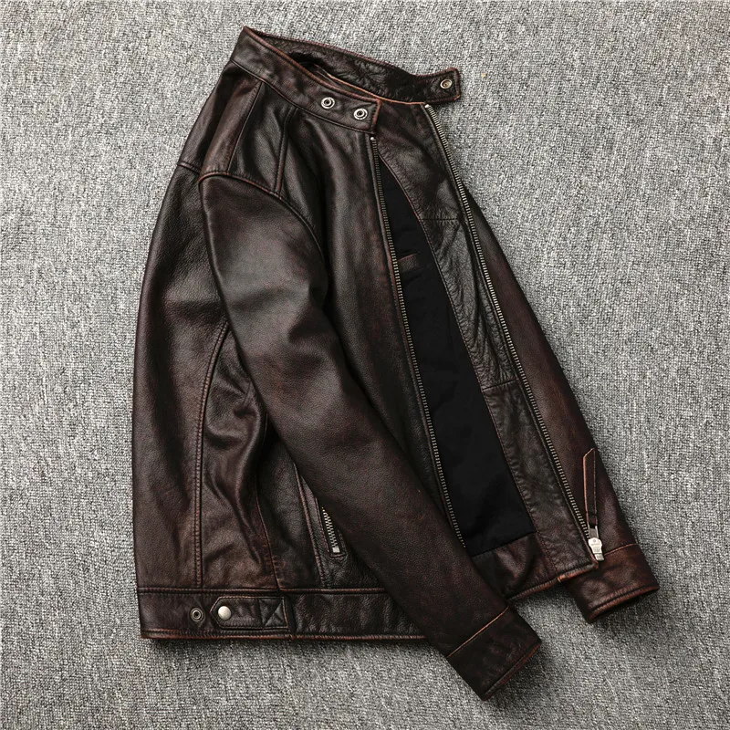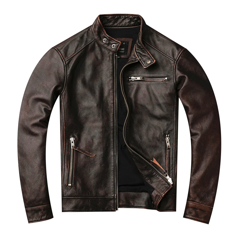 Мужская кожаная куртка AYUNSUE, винтажная куртка из коровьей кожи, модные весенне-осенние куртки из воловьей кожи, KJ4118, 2020, 1926