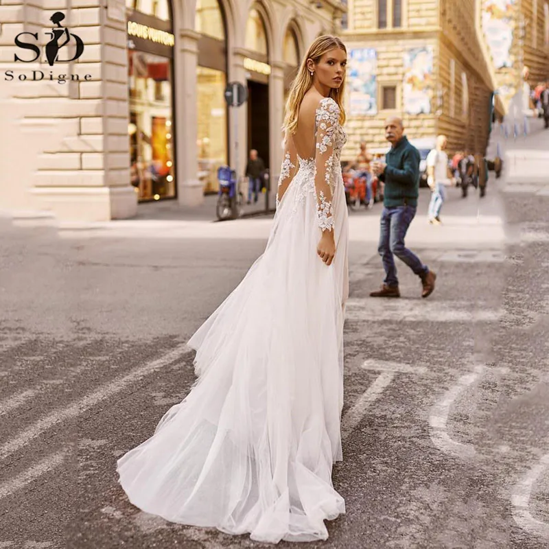 Женское свадебное платье со съемным шлейфом SoDigne, длинное кружев...