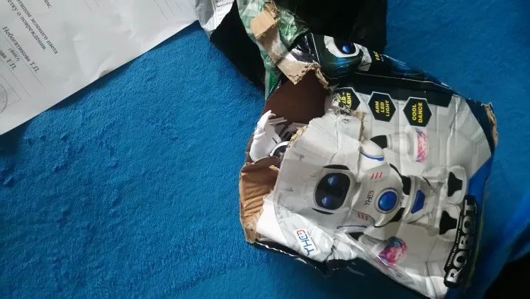 Отправка была быстрая, получила через 2,5 недели до Якутска, упаковано было плохо, только в пакет, упаковка вся вмятинах, хорошо что робот не сломался в пути, работает