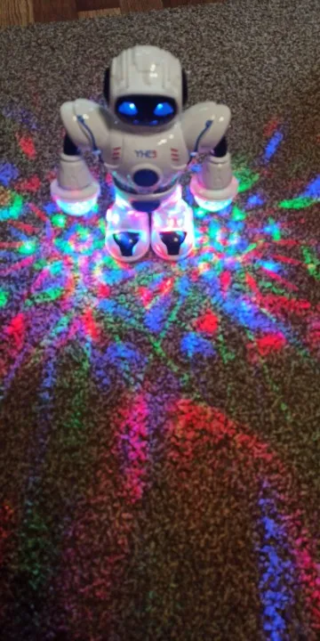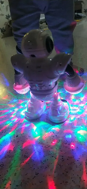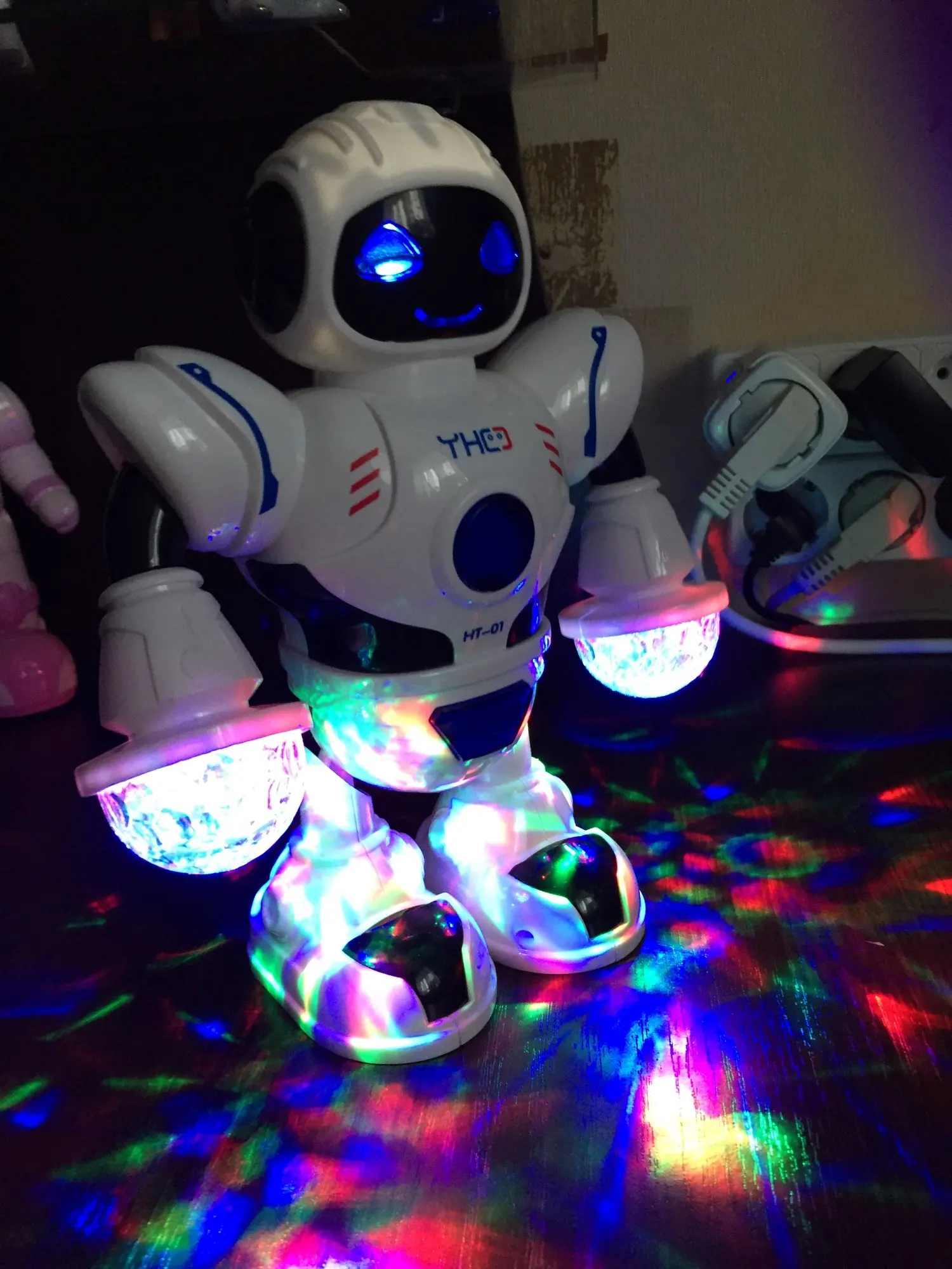 Ребенок роботом очень доволен, одна и та же мелодия играет, светится ярко, танцует. Если родители нервные не советую